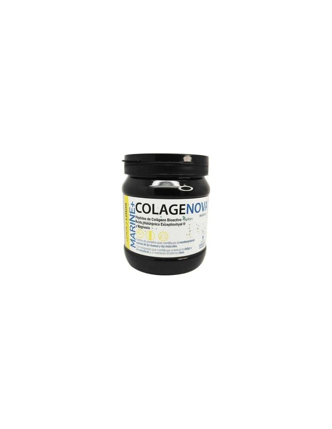 Colágeno hidrolizado puro (pescado), maltodextrina, gluconato de Magnesio, ácido hialurónico de origen vegetal, aroma natural (limón), antiaglomerante: sílice, edulcorante: sucralosa. Cada dosis aporta 10 gr. de Colágeno hidrolizado puro, 100 mg. de Ácido Hialurónico y 500 mg. de Gluconato de Magnesio.