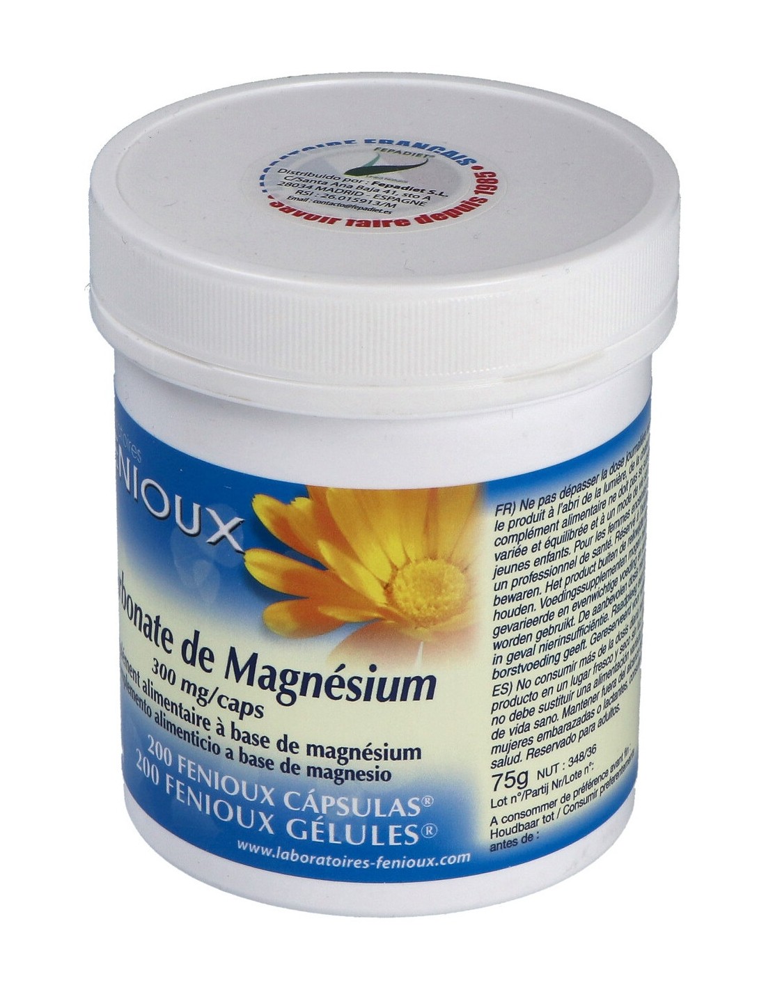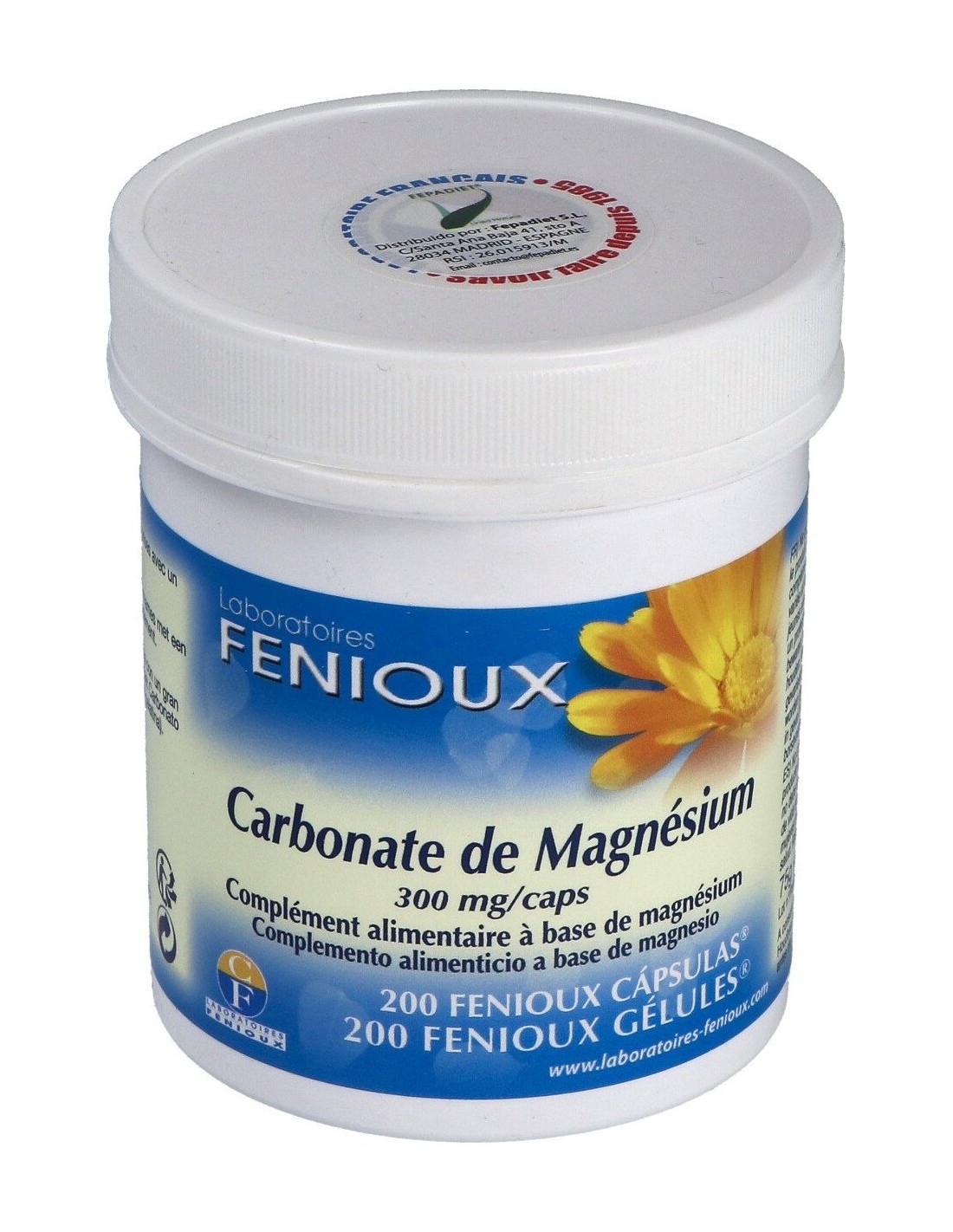 Este producto de Fenioux es un complemento alimenticio. Se trata de 200 cápsulas blandas hechas de gelatina y rellenas de magnesio y carbonato de magnesio. Este último contribuye al correcto desempeño del sistema nervioso y del cuerpo en general. Alivia el cansancio persistente y regula el equilibrio electrolítico del cuerpo humano. Además, este complemento potencia el proceso de división celular y la síntesis proteica natural. Igualmente, ayuda a mantener sanos los músculos, dientes y huesos.