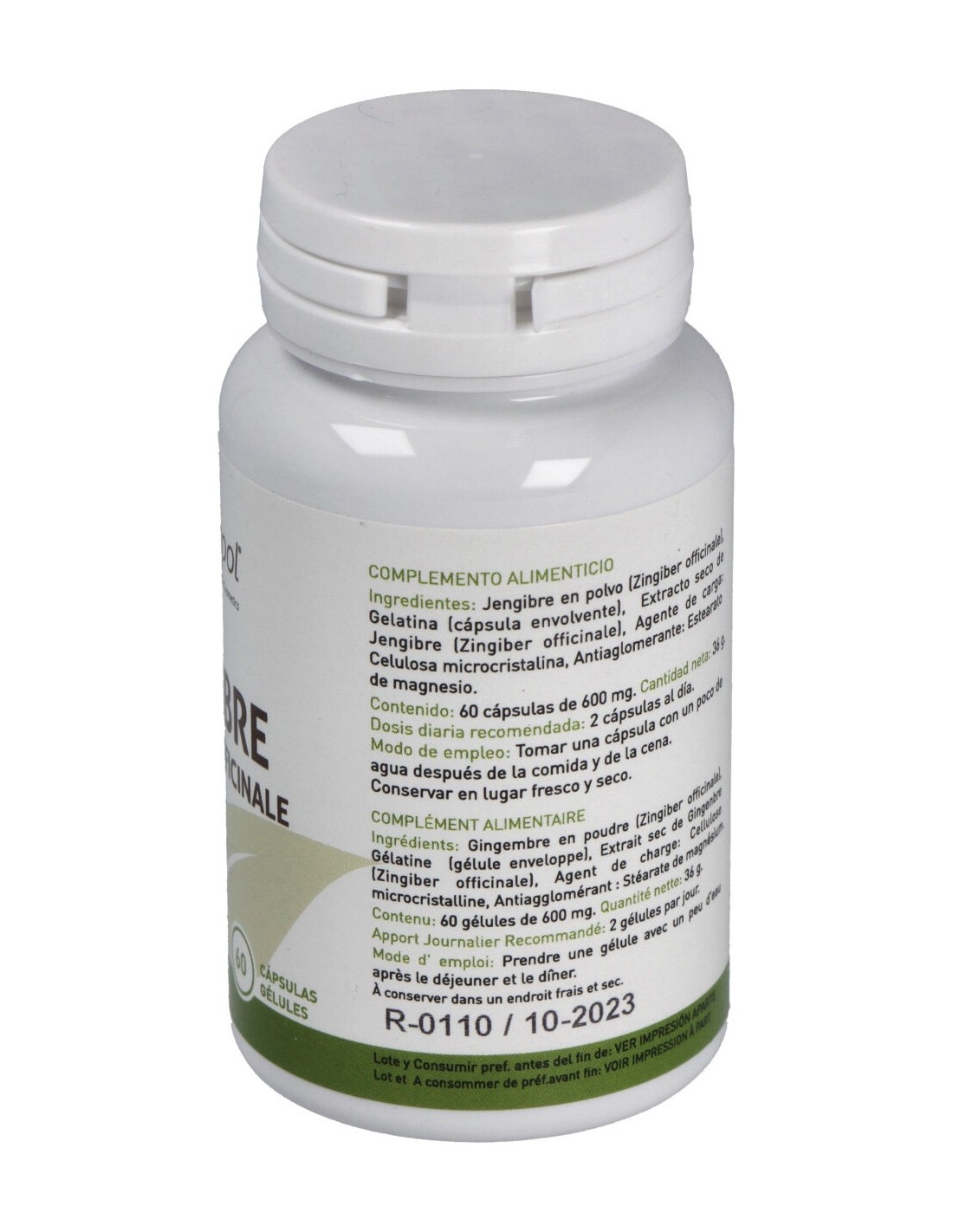 Complemento alimenticio formulado a base de extracto seco de jengibre. Bote de 60 cápsulas. Favorece la función digestiva e intestinal normal. Al jengibre se le atribuyen propiedades tónicas y estimulantes. Indicado para adultos.