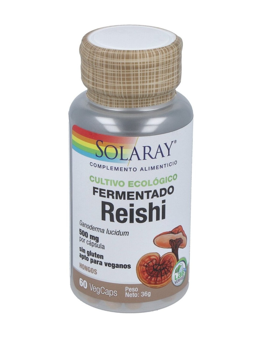 Hongo Reishi (Ganoderma lucidum), orgánico y fermentado, cápsula de celulosa vegetal.