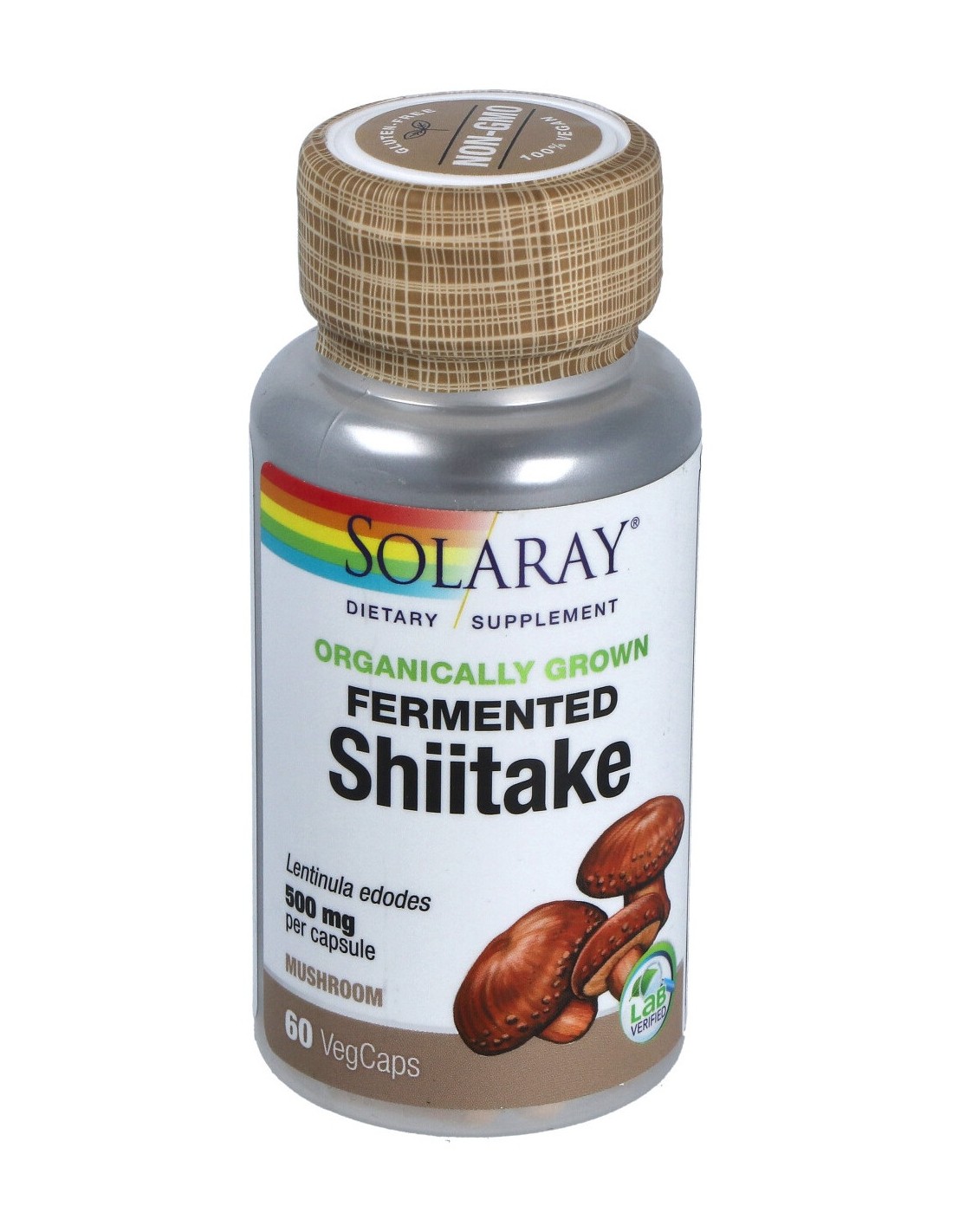 Suplemento nutricional de Solaray que viene presentado en cápsulas formuladas con hongo shiitake. Es un producto orgánico. El shiitake es una fuente importante de polisacáridos, que son beta-glucanos, beneficiosos para el sistema inmunológico. También cuenta con vitaminas B y D, que son fundamentales para la buena salud de los huesos y dientes. Contiene enzimas como la pepsina y tripsina, que son ideales para mantener una buena digestión.