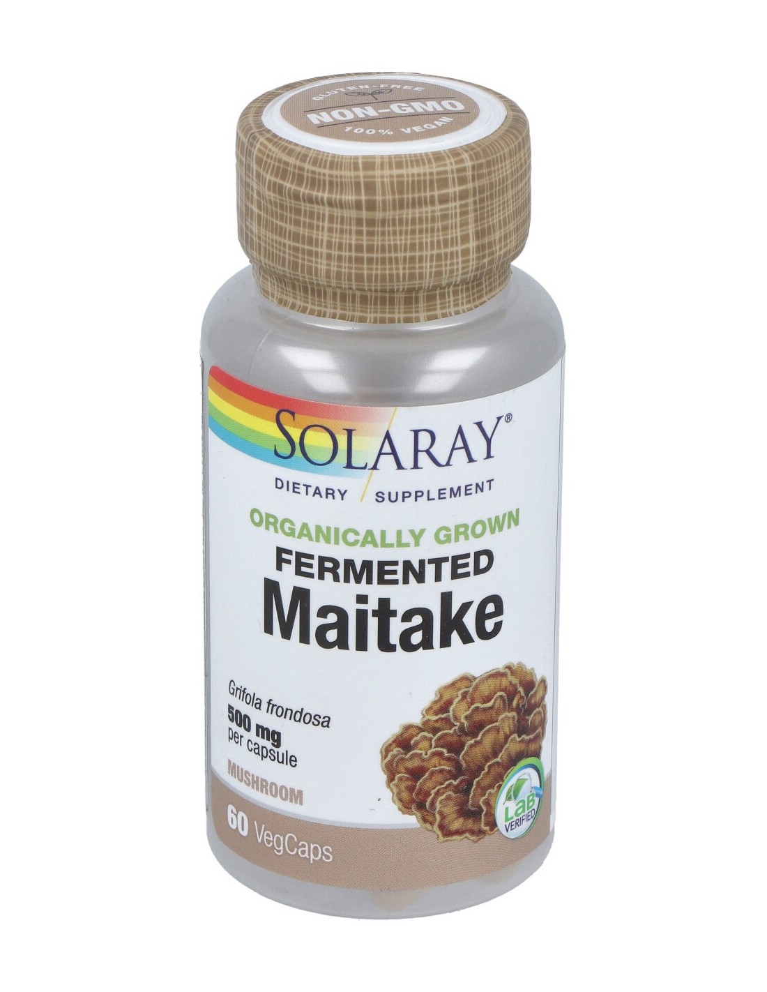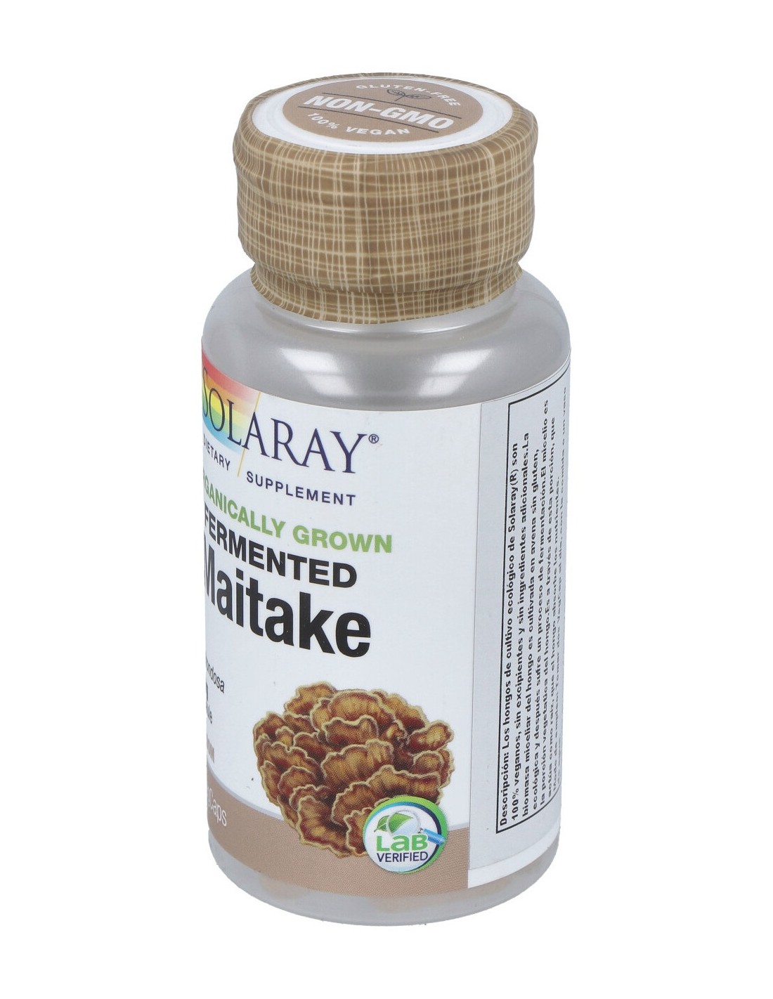 Hongo Maitake (Grifolia frondosa) orgánico y fermentado, cápsula de celulosa vegetal.
