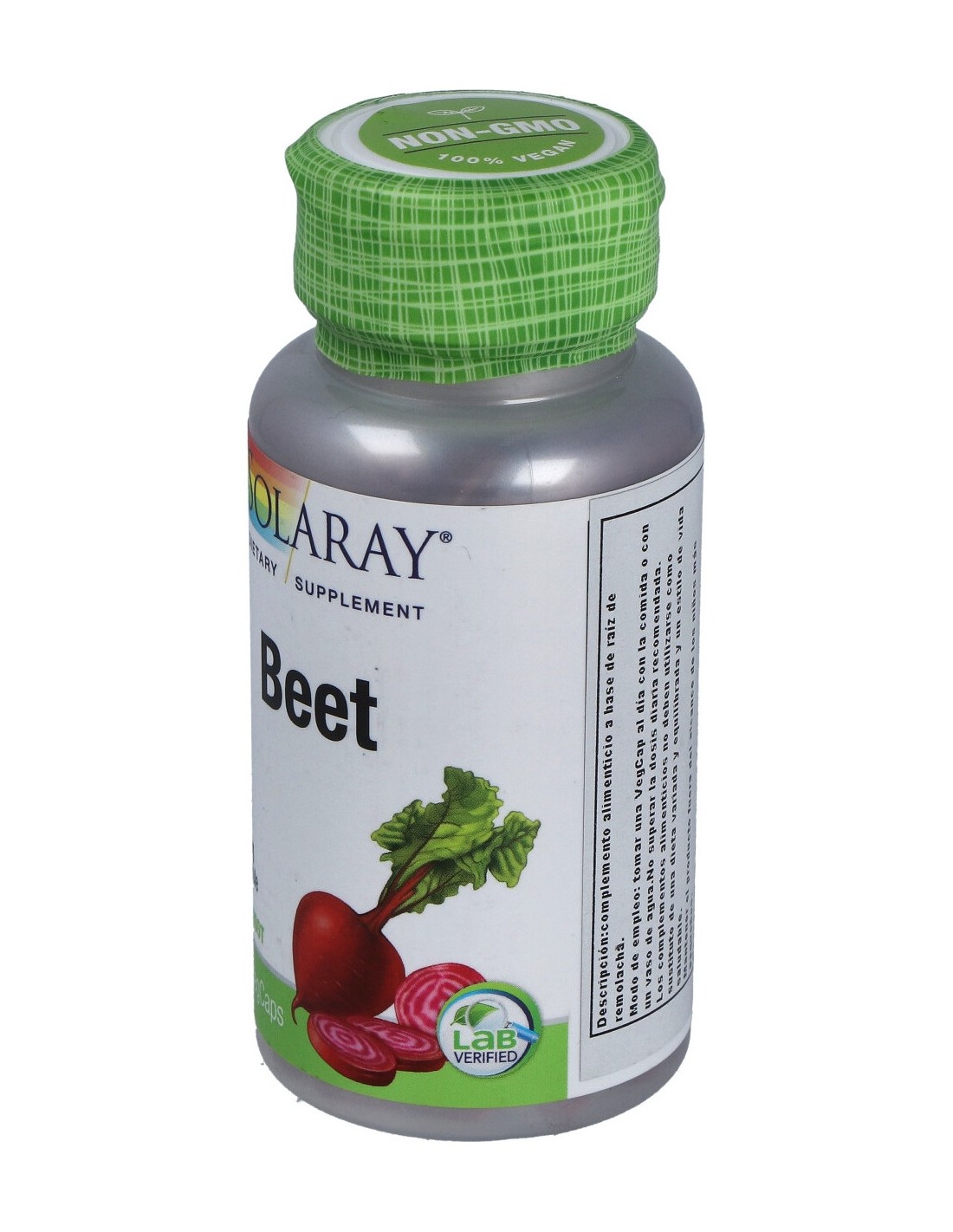 Este producto de Solaray es un complemento alimenticio elaborado a base de raíz de remolacha. Suministra apoyo al sistema cardiovascular. Ayuda a controlar los niveles de tensión arterial. Aporta valor nutricional. Actúa como una poderosa fuente de potasio y vitamina C y es apto para veganos. Cuenta con una gran cantidad de sustancias activas. Contiene antioxidantes, por lo que favorece el buen estado de la retina.