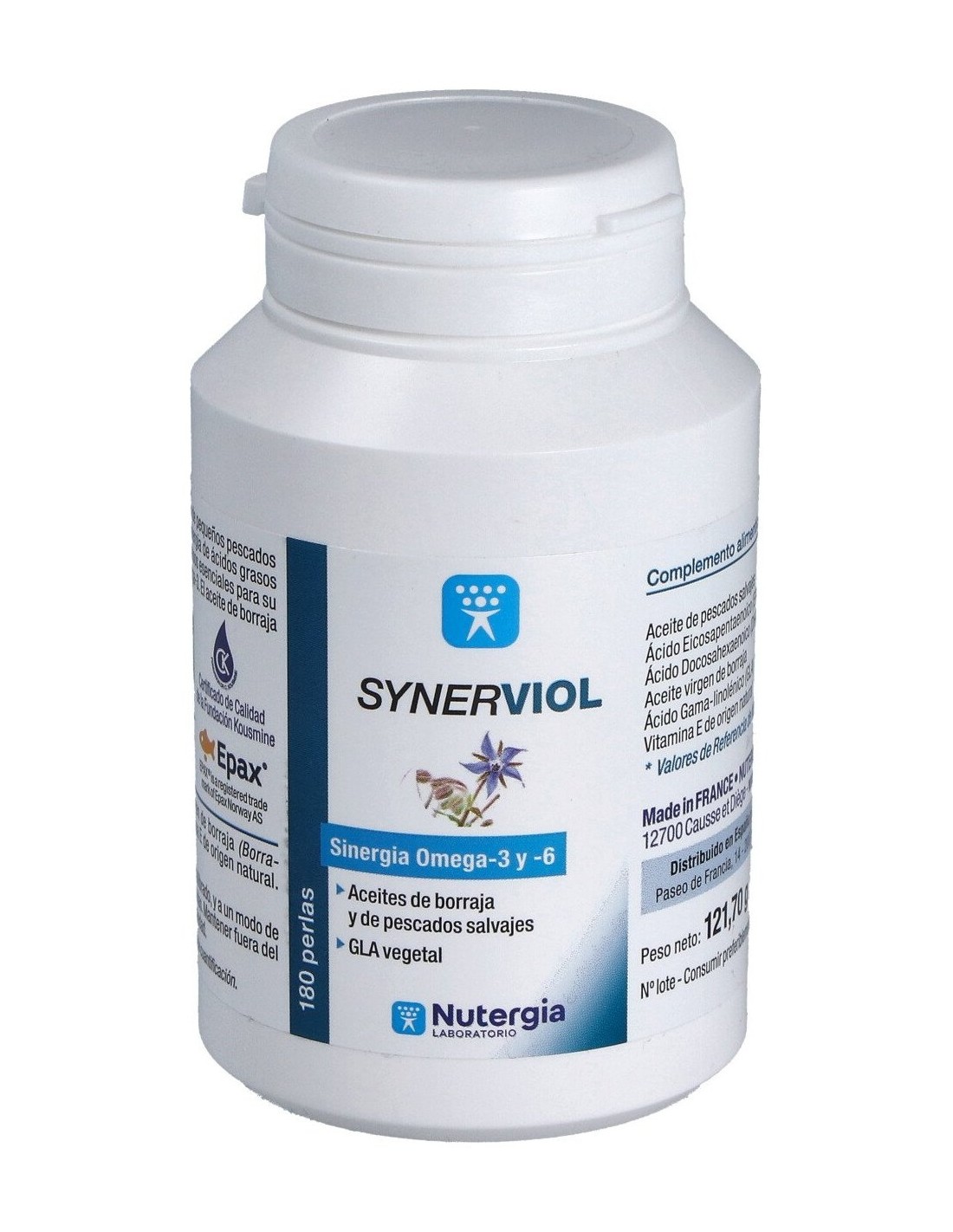 Nutergia Synerviol 180caps es un suplemento alimenticioformulado con aceite virgen de Borraja de primera presión en frío y de aceites de Pescados salvajes. Aporta al organismo ácidos grasos esenciales Omega-3 y Omega-6 en proporciones equilibradas.