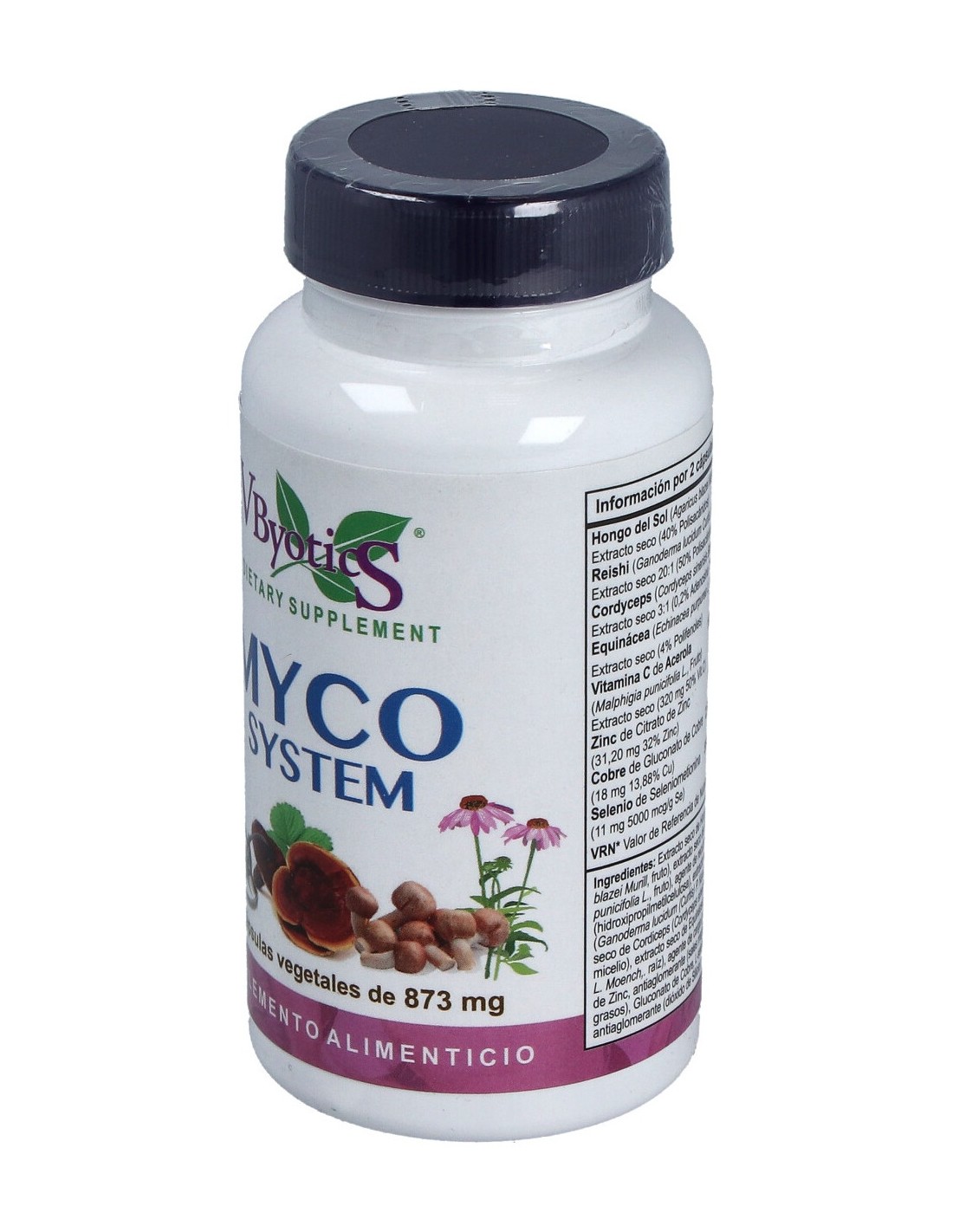 Extracto Seco De Hongo Del Sol (Agaricus Blazei Murill, Fruto), Extracto Seco De Acerola (Malpighia Punicifolia L., Fruto), Agente De Recubrimiento (Hidroxipropilmetilcelulosa), Extracto Seco De Reishi (Ganoderma Lucidum (Curtis) P. Karst., Fruto), Extracto Seco De Cordiceps (Cordyceps Sinensis (Berk.) Sacc., Micelio), Extracto Seco De Equinácea (Echinacea Purpurea L. Moench,. Raíz), Agente De Carga (Polidextrosa), Citrato De Zinc, Antiaglomerante (Sales Magnésicas De Ácidos Grasos), Gluconato De Cobre, L-Seleniometionina Y Antiaglomerante (Dióxido De Silicio).