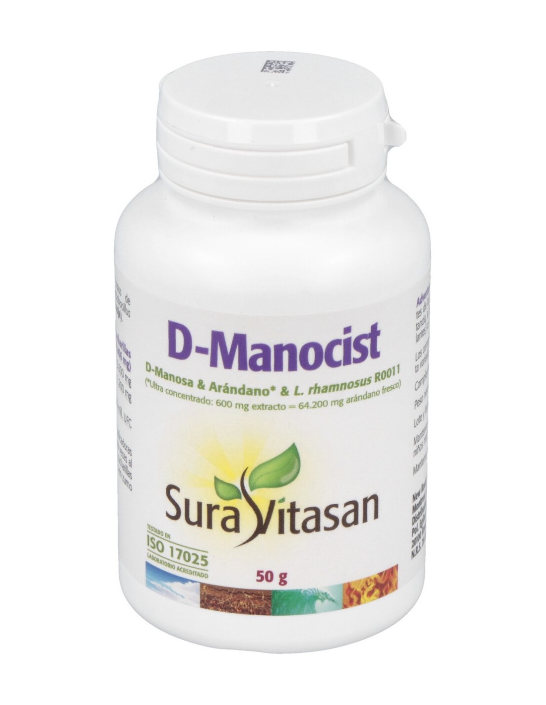 Suplemento a base de D-Manosa, un azúcar natural sin ningún efecto en el metabolismo de la glucosa, extracto ultra concentrado de arándano rojo y Lactobacillus rhamnosus, para apoyar el mantenimiento de las vías urinarias en condiciones normales.