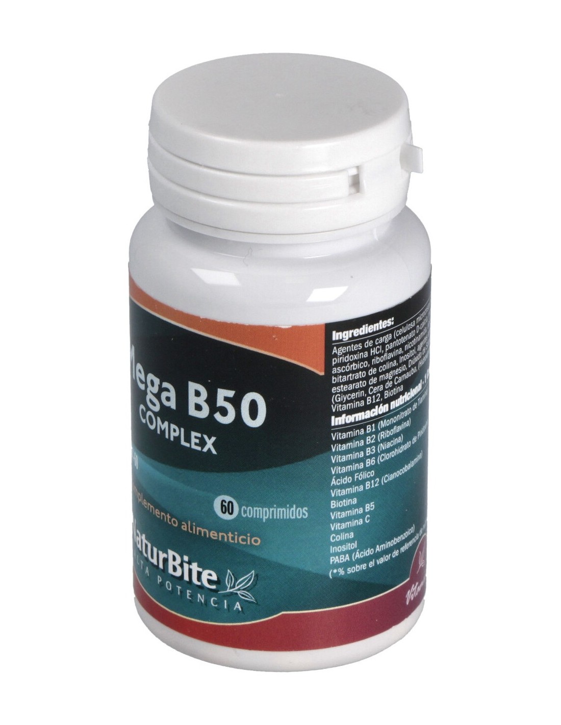 Tiamina (Vitamina B-1) (Mononitrato de Tiamina) 50 mg, Riboflavina (Vitamina B-2) 50 mg, Niacina (como Niacinamida) 50 mg, Vitamin B-6 (como Hidrocloruro de Piridoxina), Ácido Fólico 400 mcg, Vitamina B-12 ( como Cianocobalamina) 50 mcg. Biotina 50 mcg, Ácido Pantoténico (como pantotenato de calcio) 50 mg., Colina Bitartrato 50 mg, Inositol 50 mg, PABA (Ácido Para-Amino benzoico) 50 mg., Mezcla Patentada. (Hojas de alfalfa, berros (aéreas), Hoja de Perejil, Lecitina de soja, Salvado de arroz). 5 mg, Niacina (como Niacinamida) 50 mg, Vitamin B-6 (como Hidrocloruro de Piridoxina) 50 mg. Gelatina, Celulosa vegetal, Esterato de magnesio vegetal, Silicio.