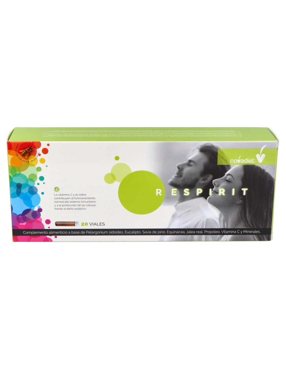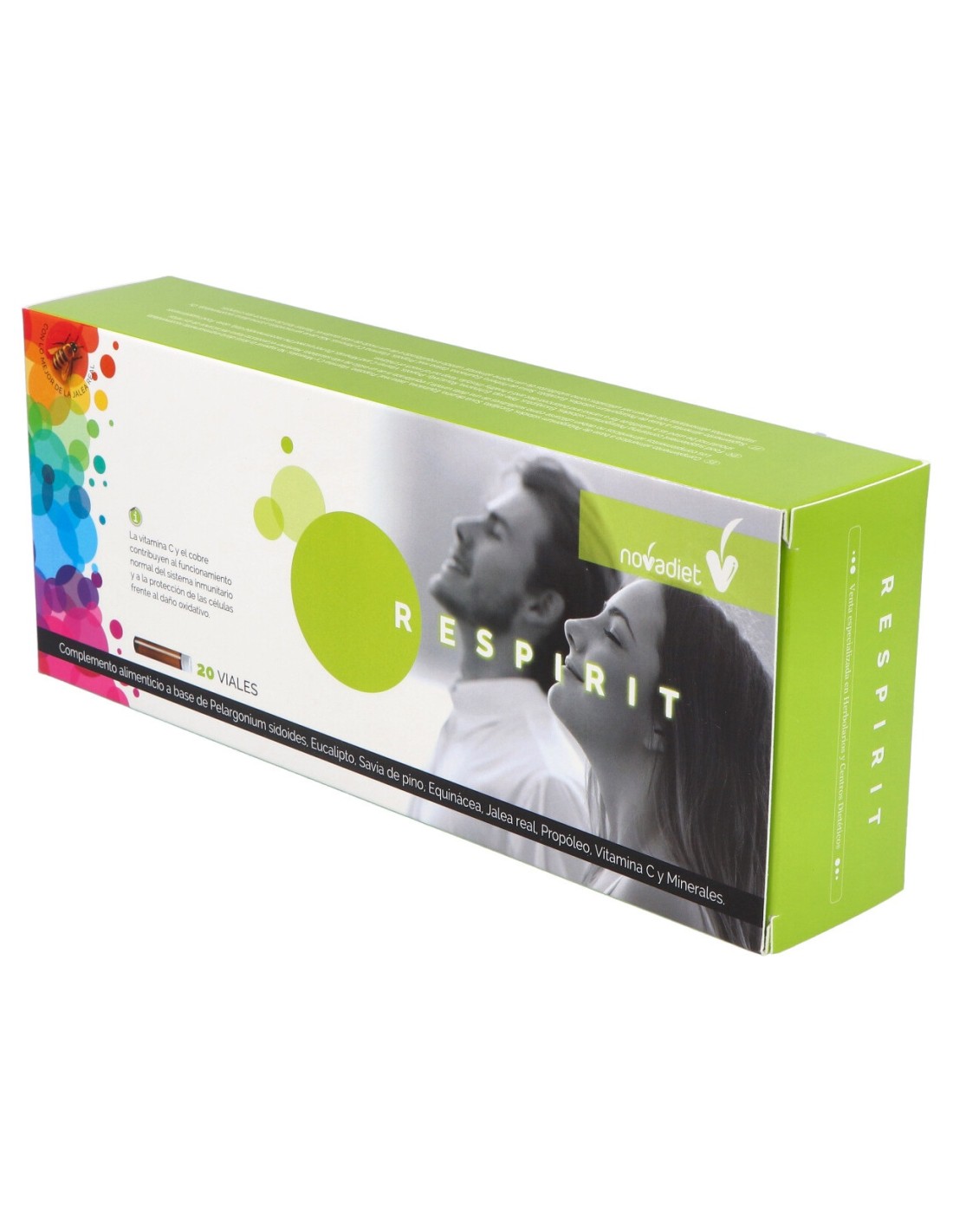 Los viales Novadiet Respirit te ayudarán a combatir infecciones respiratorias tan frecuentes en procesos gripales y catarrales, fluidificando la mucosidad para que puedas respirar mejor, suavizando la garganta para evitar las molestias ocasionadas por la tos y la irritación y fortaleciendo tu sistema inmune para acortar la duración de la infección.