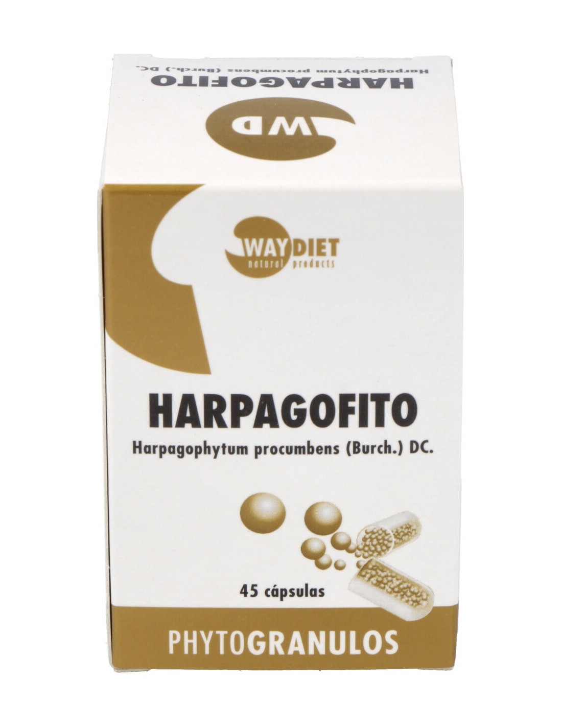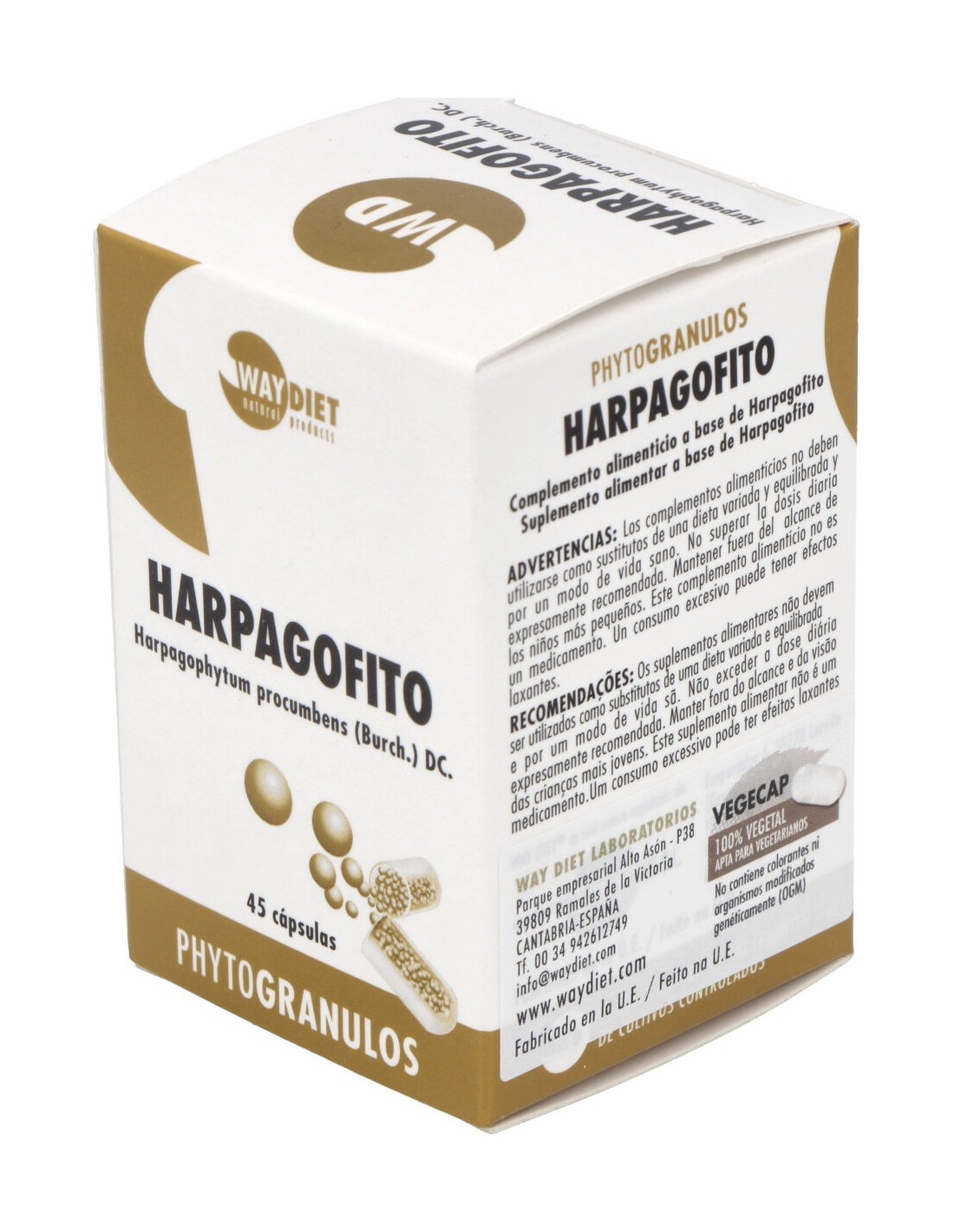 Harpagofito (Harpagophytum procumbens (Burch.) DC.) 400 mg, Agente de carga (Xilitol), Agente de recubrimiento (Povidona K30). Cápsula vegetal.