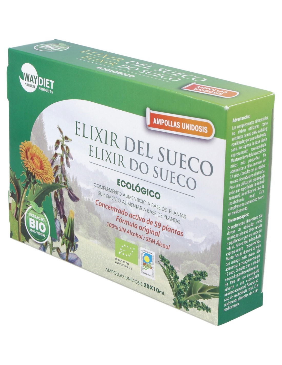 Ampollas compuestas por una combinación de extractos del 59 plantas tradicionalmente medicinales que poseen propiedades beneficiosas para el organismo y ayudan al correcto funcionamiento del los distintos órganos. Además, ofrece acción antioxidante y diurética y facilita la eliminación de líquidos, previniendo la aparición de las molestas causadas por la retención.