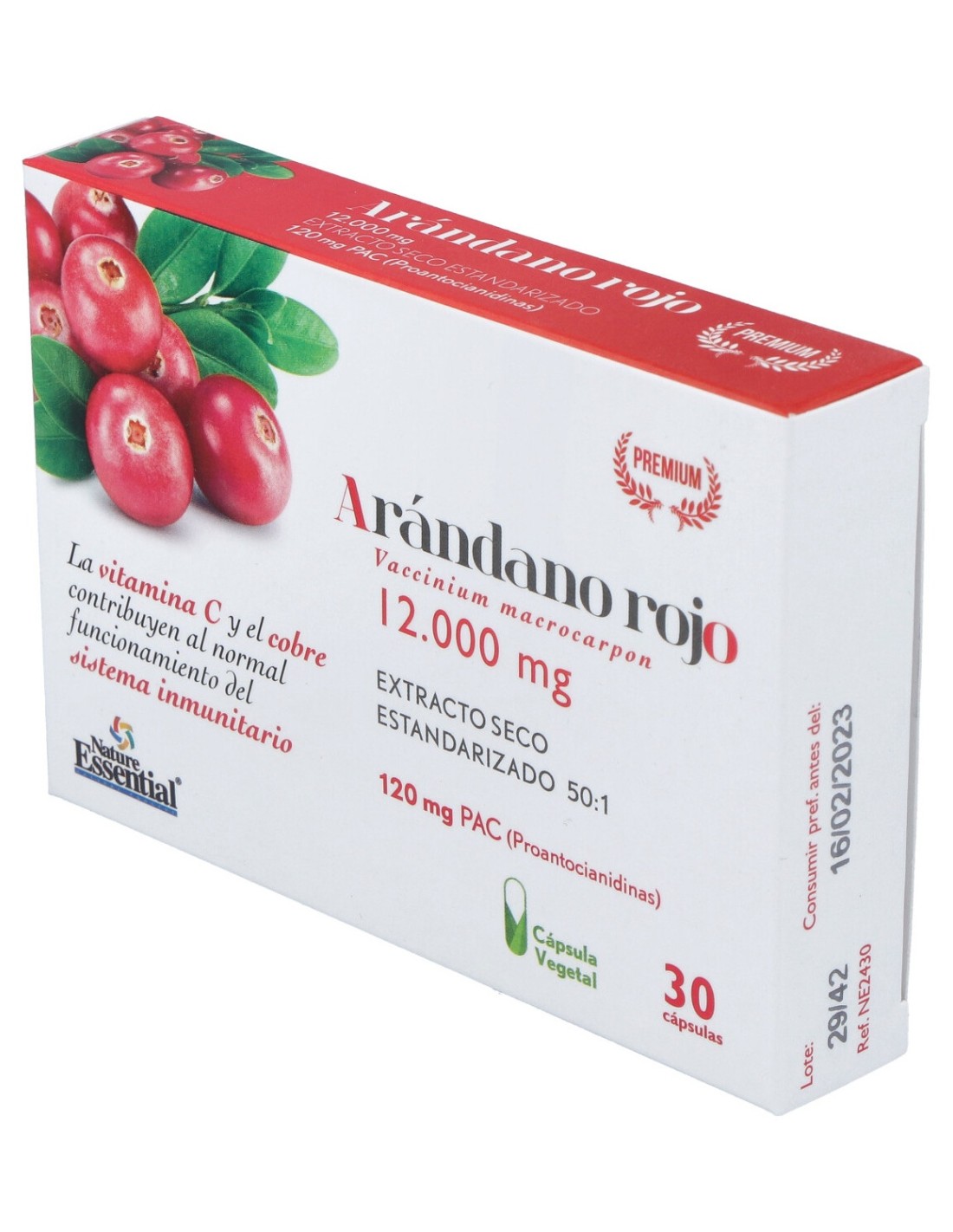 Complemento alimenticio a base de arándano rojo.ARANDANO ROJO (ext seco 120 proantocianidas) 30cap de NATURE ESSENTIAL