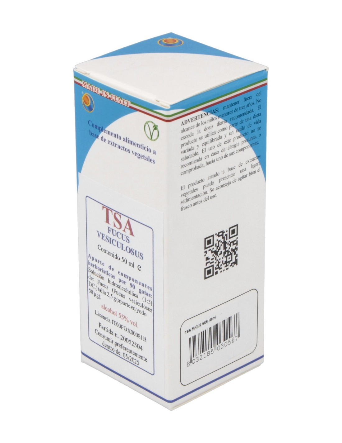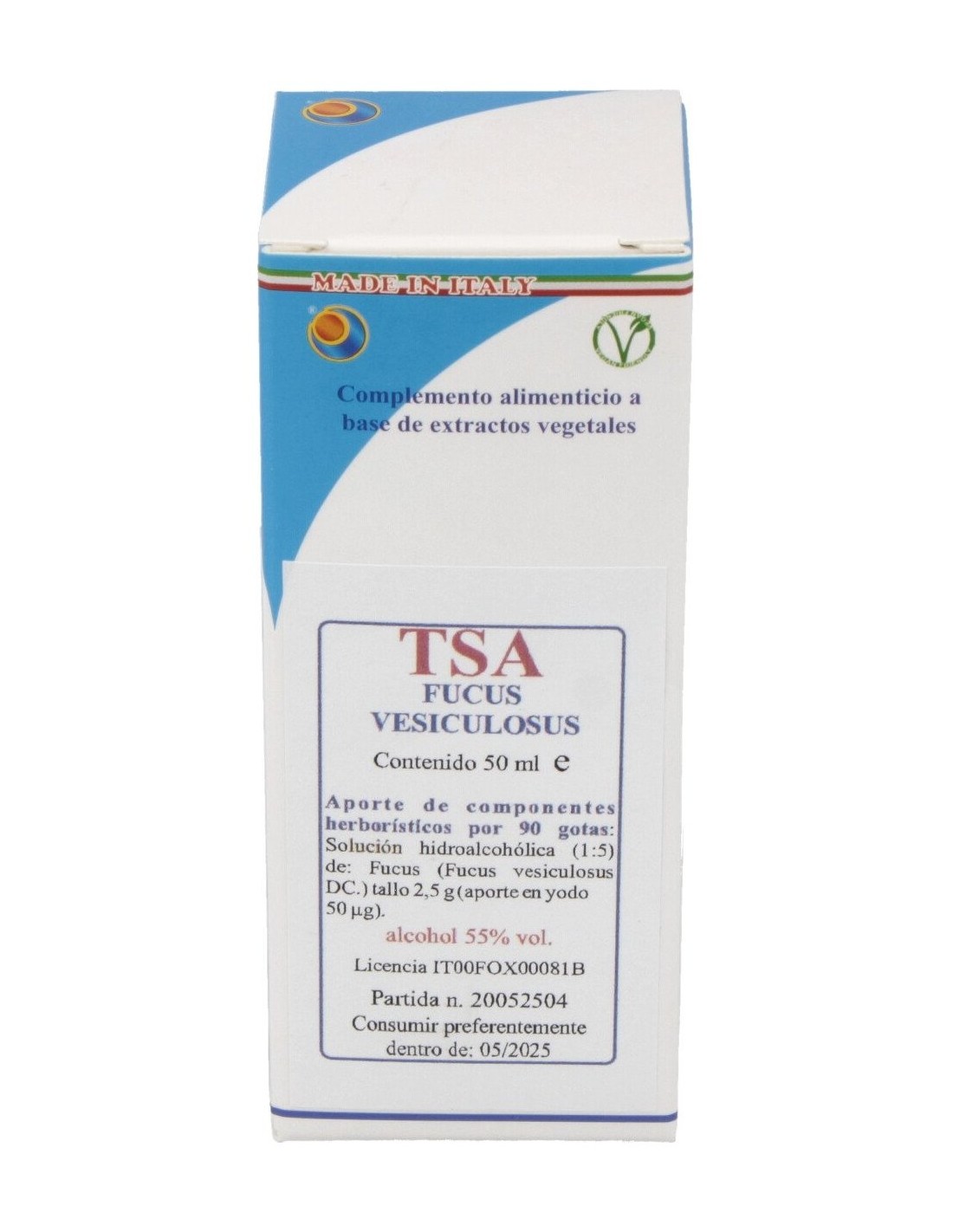 Solución hidroalcohólica Espagírico-Alquímica con una relación de extracción de 1:5 (R.E. 1/5) de Sargazo vesicoso (Fucus vesciculosus L.) talo 2,5 g (ingesta de yodo 50 µg - 50% RDA).