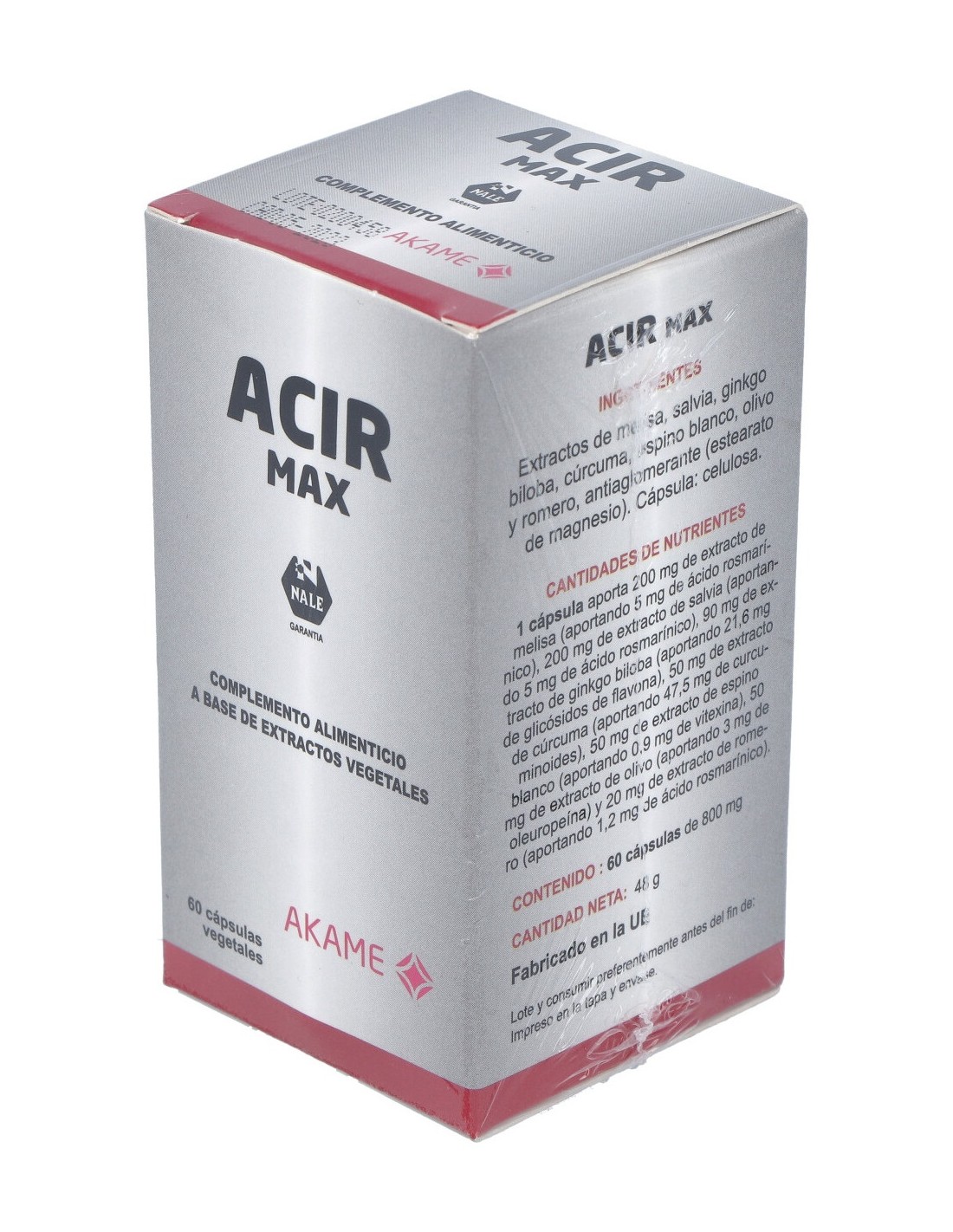 Extrato seco de erva-cidreira Melissa officinalis (> 2,5% ácido rosmarínico) 200 mg Extrato seco de sálvia Salvia officinalis (2,5% ácido rosmarínico) 200 mg Extrato seco de ginkgo Ginkgo biloba (24% ginkgoflavonas) 90 mg Extrato de espinheiro seco Crataegus oxyacantha / Crataegus monogyna (> 1,5% vitexinarhamnosídeo) 50 mg Extrato seco de cúrcuma Curcuma longa (95% curcumina) 50 mg Extrato seco de oliveira Olea europaea (6% oleuropeína) 50 mg Extrato seco de alecrim Rosmarinus officinalis (6% de ácido rosmarínico) ) 20 mg