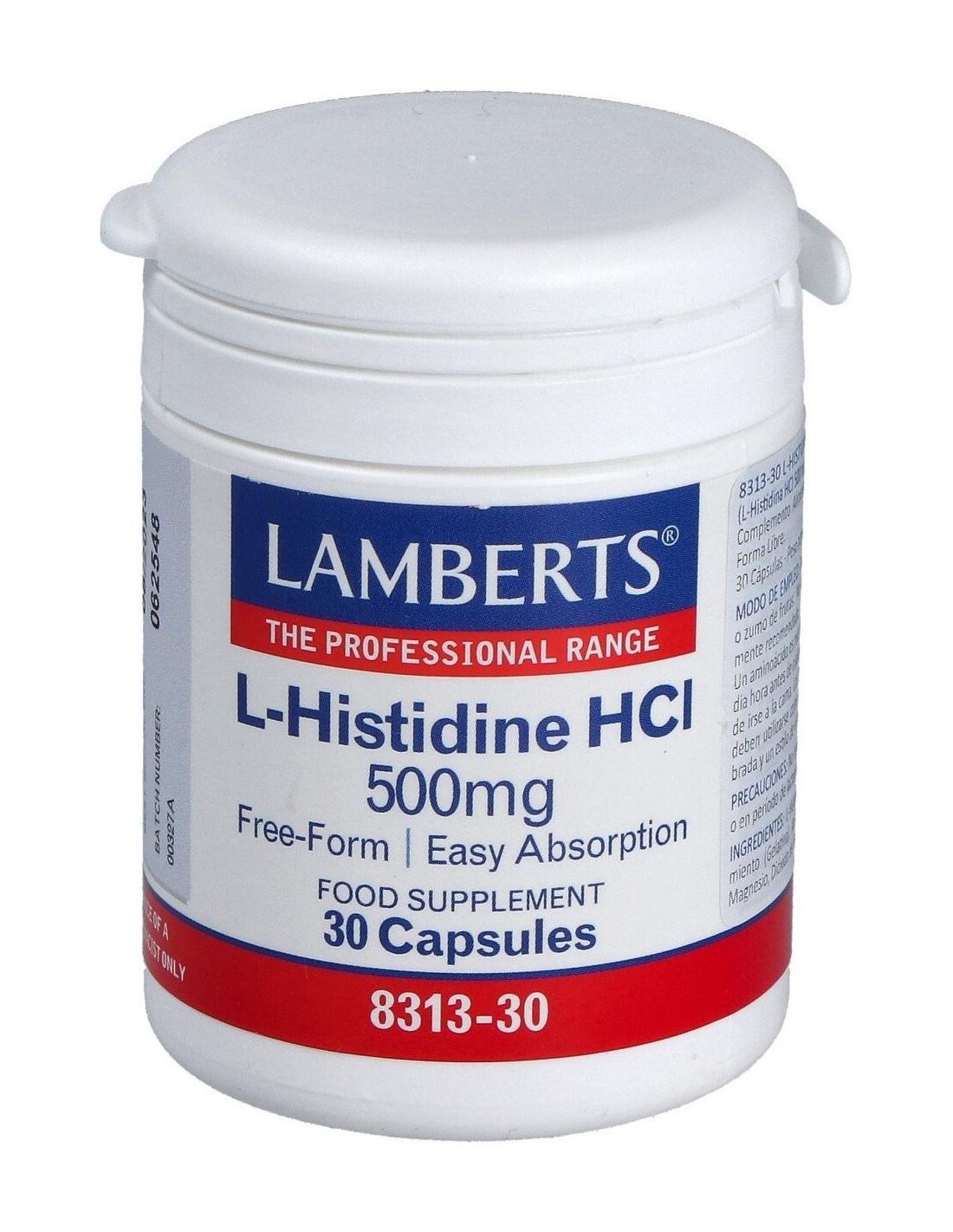 La histidina es considerada un aminoácido no esencial y está involucrada en la regulación y utilización de varios minerales esenciales en el cuerpo, incluyendo el zinc, cobre, manganeso y hierro. En este producto se presenta en forma libre, lista para ser absorbida por el cuerpo sin necesidad de ser descompuesta por las enzimas digestivas.