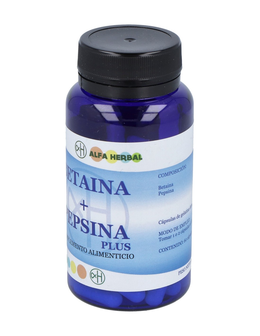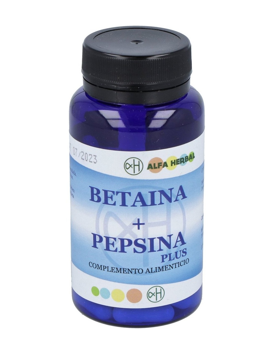 Alfa Herbal Betaína + Pepsina Plus 30caps es un complemento alimenticio a base de betaína y pepsina que ayuda a mejorar la metabolización de proteínas, calcio, vitamina B12 y hierro. Contiene 30 cápsulas.