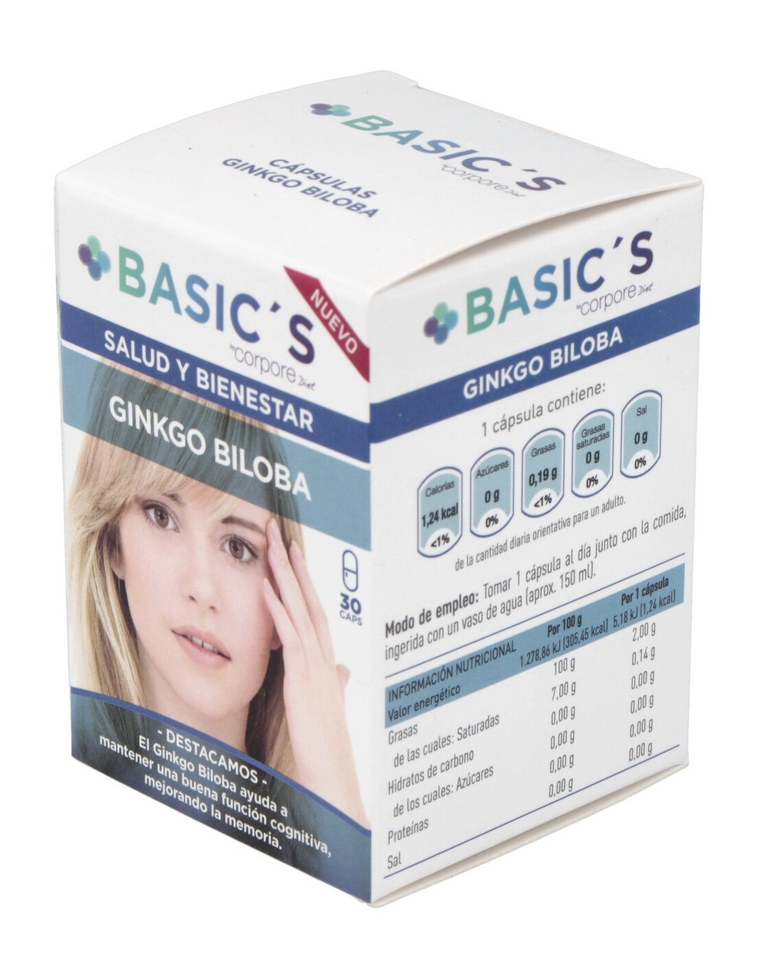 A menudo, el Ginkgo Biloba y sus Flavonoides (Ginkgoloides y Heterósidos) se usan para favorecer el aumento de la circulación sanguínea central y periférica, y como consecuencia, ayudar en la eficiente irrigación de los tejidos orgánicos. Asimismo, esta planta puede potenciar la capacidad de concentración y ayudar a tratar trastornos de memoria, dolor de cabeza, depresión y cambios de humor. Combate los síntomas del síndrome premenstrual (SPM) y ayuda a tratar el glaucoma y mejora la visión en personas con diabetes.CORPORE BASICS ginkgo biloba 30cap. de CORPORE DIET