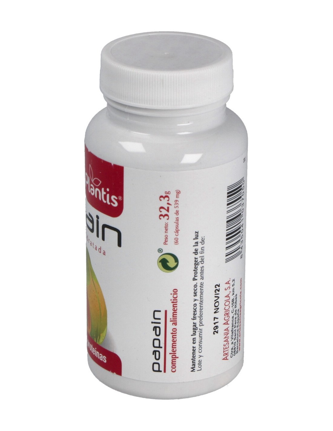 Complemento alimenticio en forma de cápsulas vegetales, elaborado a base de un 94% de papaya deshidratada, que facilita la digestión de las proteínas. Ideal para su uso en dietas deportivas, ya que el principio activo de la papaya, la papaína, actúa descomponiendo las proteínas en aminoácidos, y haciendo que el organismo las aproveche al máximo.