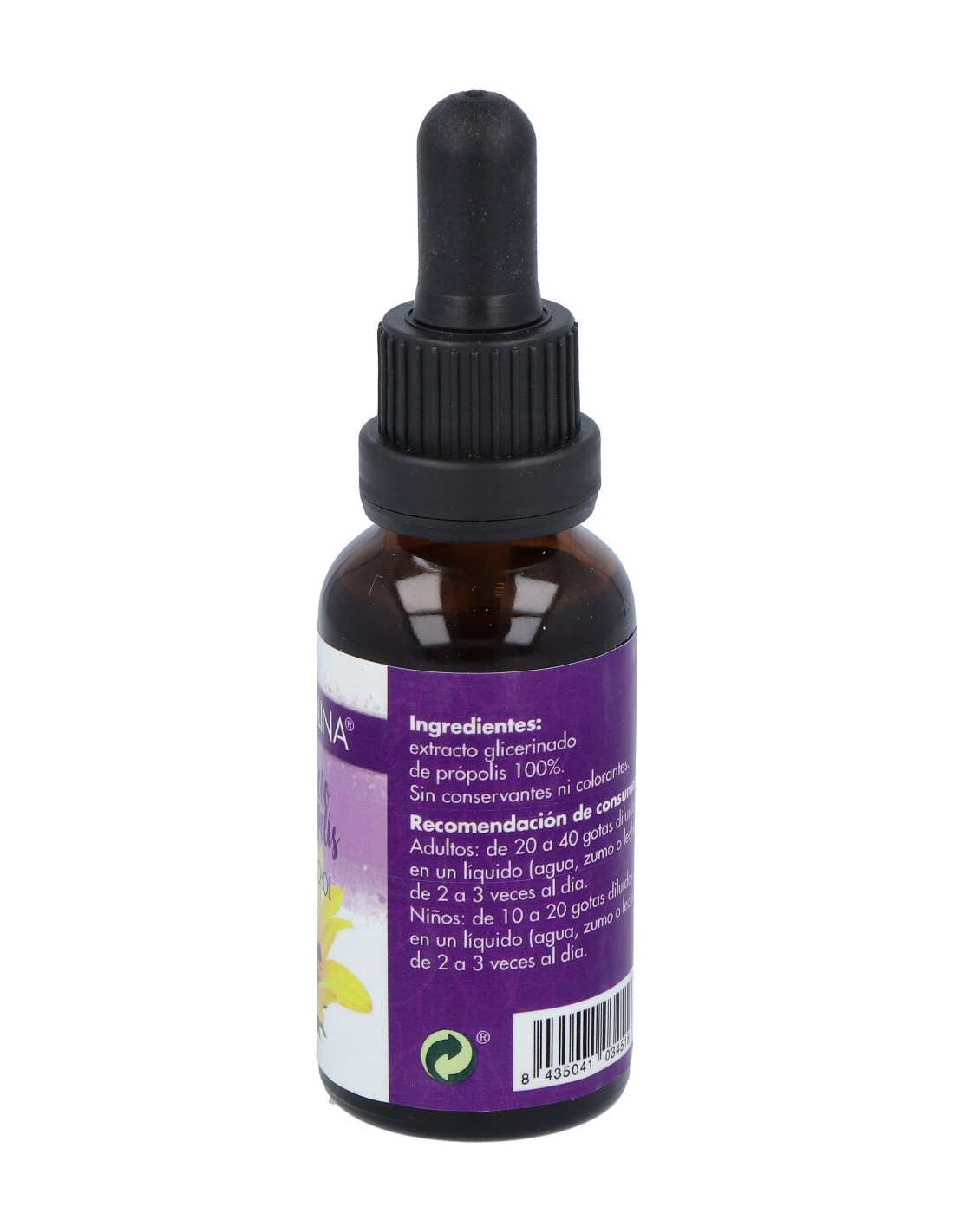 Complemento alimenticio elaborado a base de vitaminas y minerales, en formato gotas. Con una fórmula a base de propóleo y sin alcohol, contribuye a estimular los procesos de regeneración de los tejidos y ayuda en el proceso de cicatrización. Contiene propiedades desinfectantes y es adecuado para desinfección de heridas, quemaduras, para secar las espinillas. Favorece la mejora del sistema inmune en casos de dolor de garganta, gripe, sinusitis, amigdalitis y ayuda a tratar problemas respiratorios. Es cicatrizante, antiinflamatorio y bactericida.
