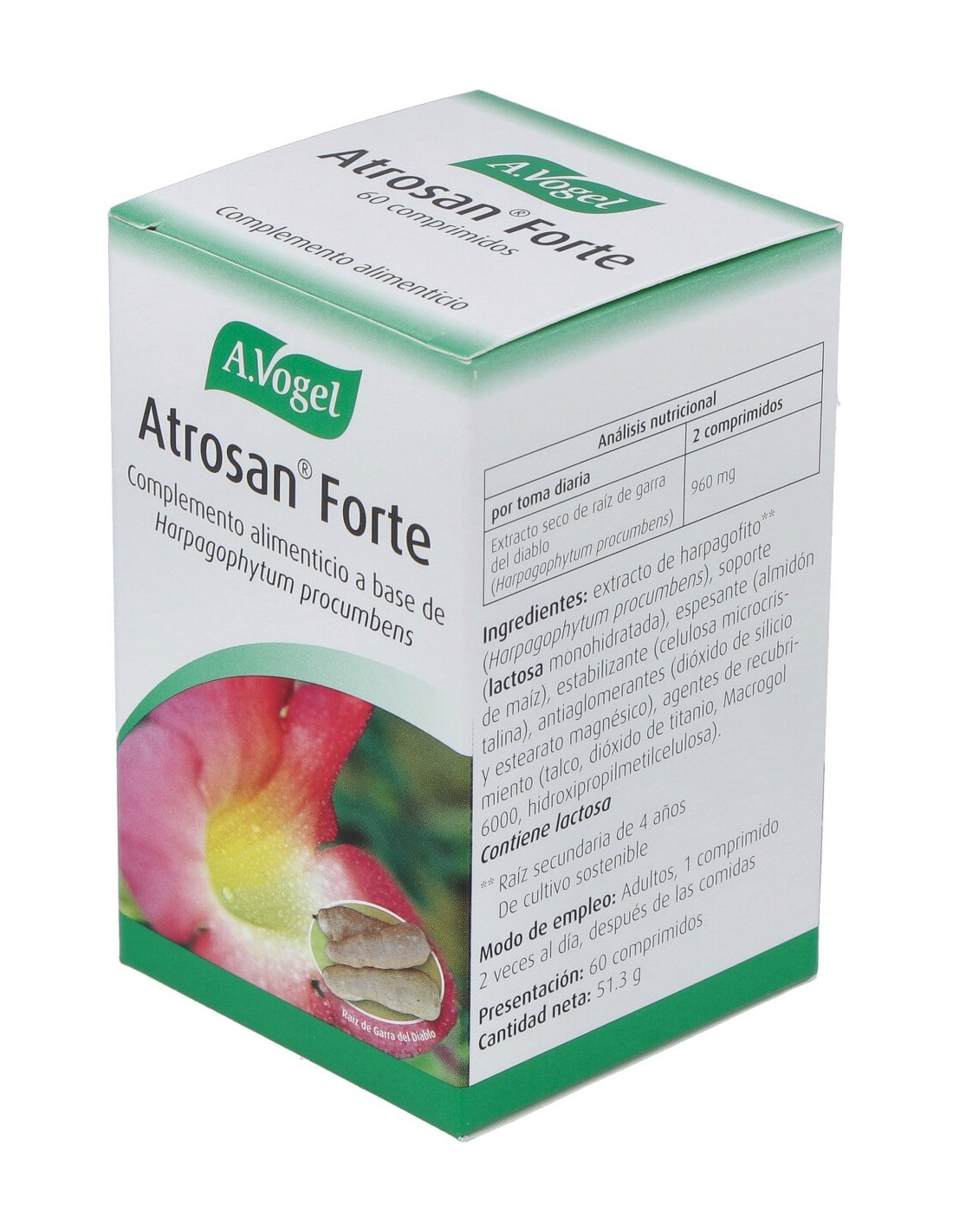 A. Vogel Atrosan Forte es un preparado vegetal a base de raíz secundaria de harpagofito con potentes propiedades para aliviar los síntomas de la artritis, artosis, dolores musculares y de espalda, fibromalgia y lumbalgia.