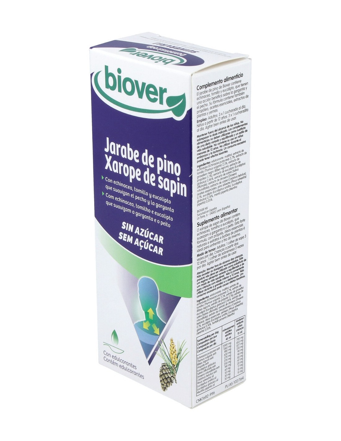 El jarabe de pino de Biover a base de echinacea, tomillo y eucalipto tiene una acción benéfica sobre la garganta y el pecho. Esta fórmula con propóleo, aceites esenciales y extractos de plantas y yemas es ideal para tomar en los días fríos de invierno.