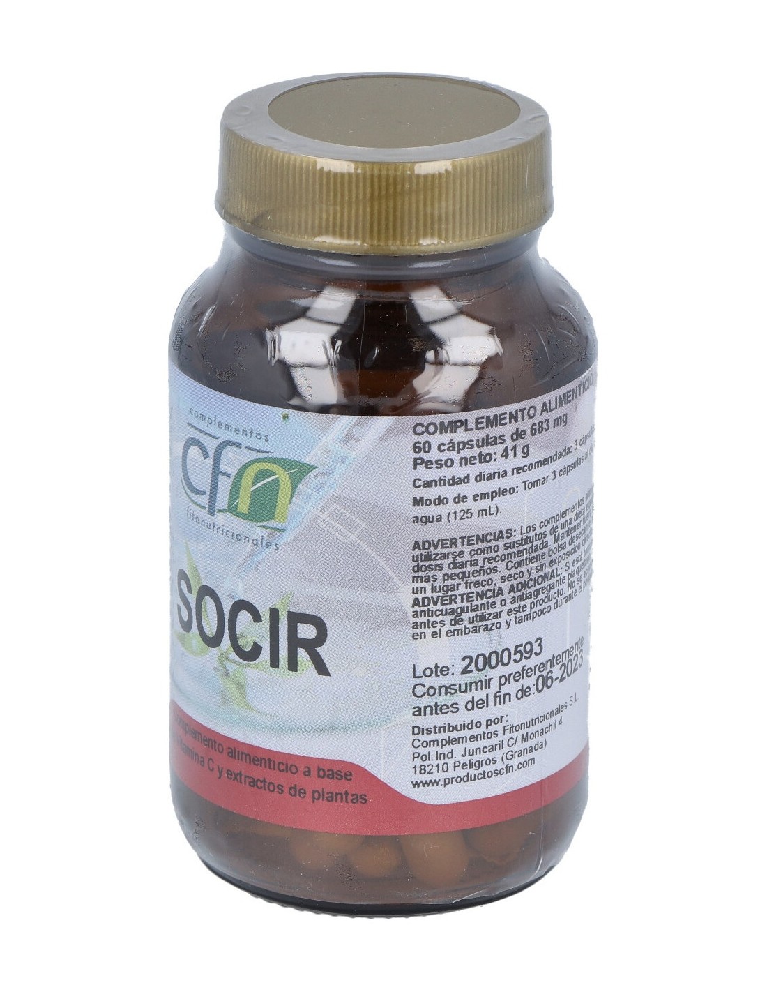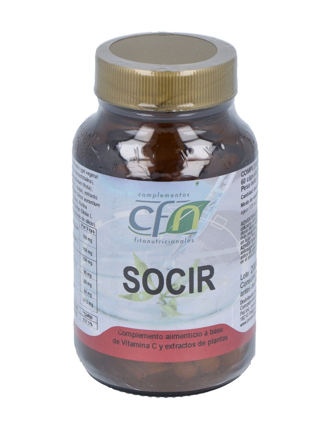 Complemento nutricional que contribuye a mantener una correcta circulación sanguínea. Indicado en caso de varices, hemorroides, flebitis, insuficiencia circulatoria, fragilidad capilar, hematomas, etc. Se emplea habitualmente para mantener el sistema circulatorio sano y ayudar a que funcione correctamente. Socir ha sido creado por CFN de una forma saludable y ecológica, de modo que sus efectos beneficiosos no se vean comprometidos.