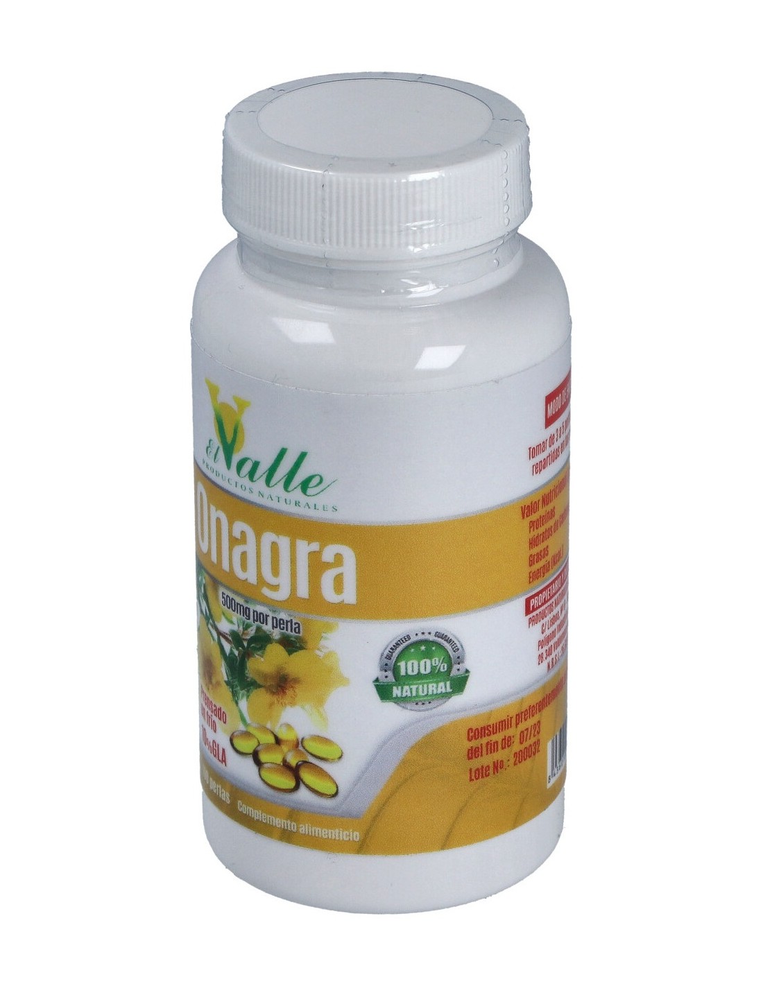Complemento alimenticio en formato de perla, que gracias a su contenido en aceite de onagra contribuye a aliviar los síntomas de menstruaciones irregulares y dolorosas, menopausia, artritis y reuma, fibrosis quística y alergias. Contribuye a mejorar el aspecto en pieles resecas y escamosas.