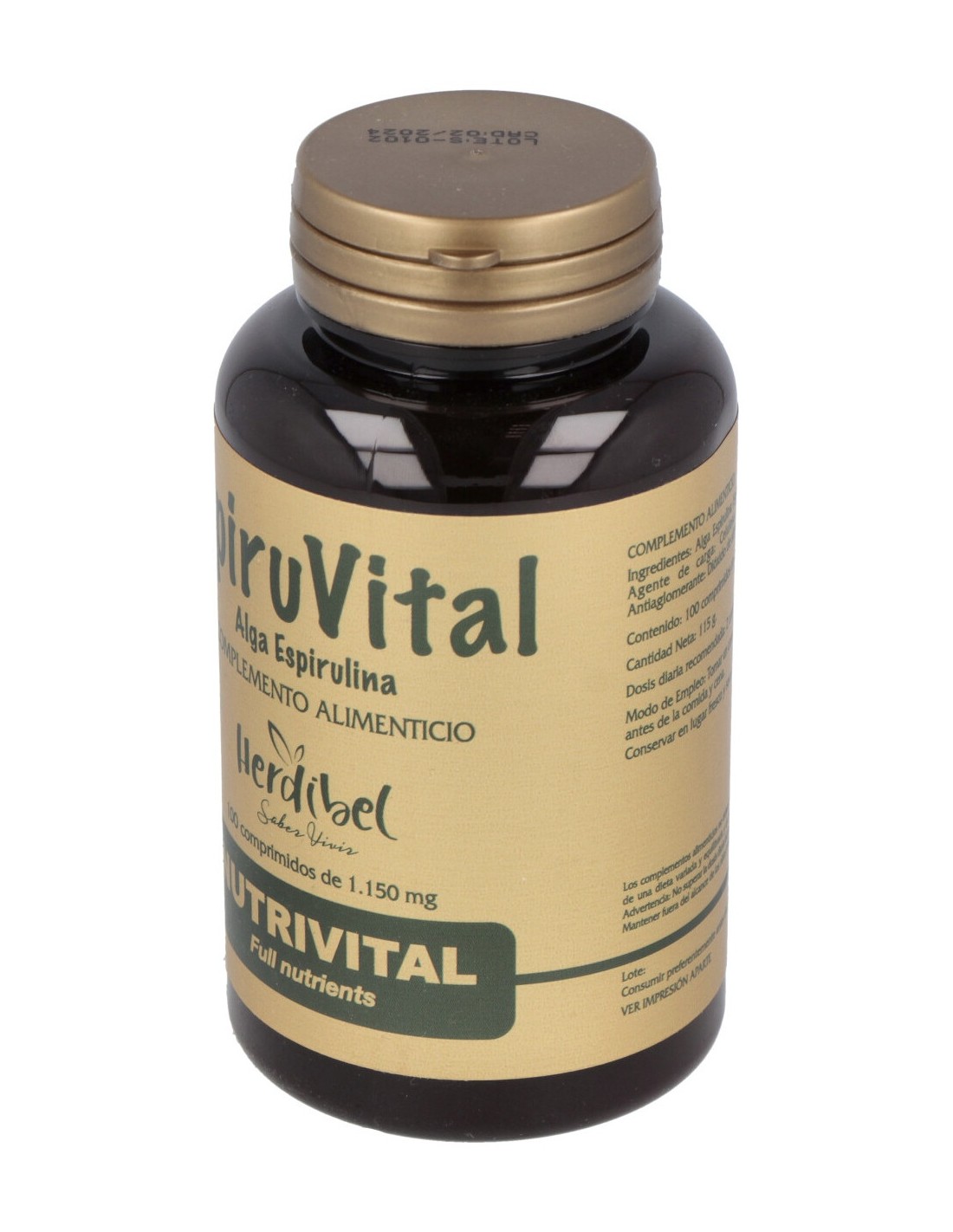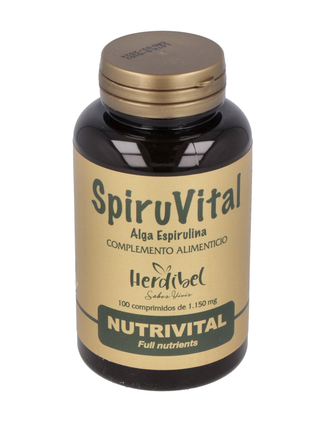 Complemento alimenticio en forma de comprimido elaborado a base de alga espirulina, que es una excelente fuente de vitaminas, minerales, antioxidantes y proteínas de alto valor biológico.