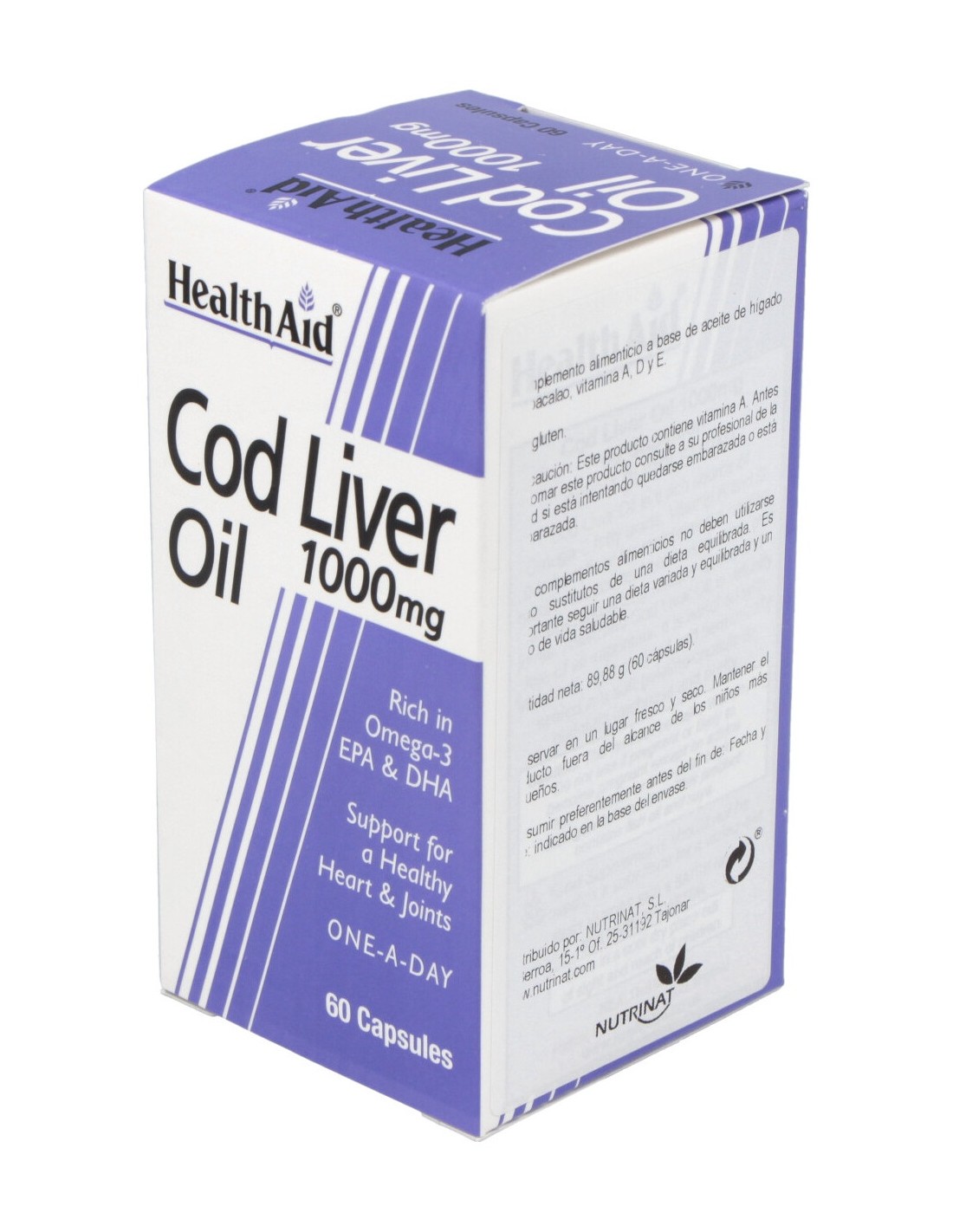 Suplemento nutricional de aceite de hígado de bacalao, fuente tradicional de las vitaminas liposolubles A y D, que aporta las dosis diarias recomendadas de estas vitaminas.