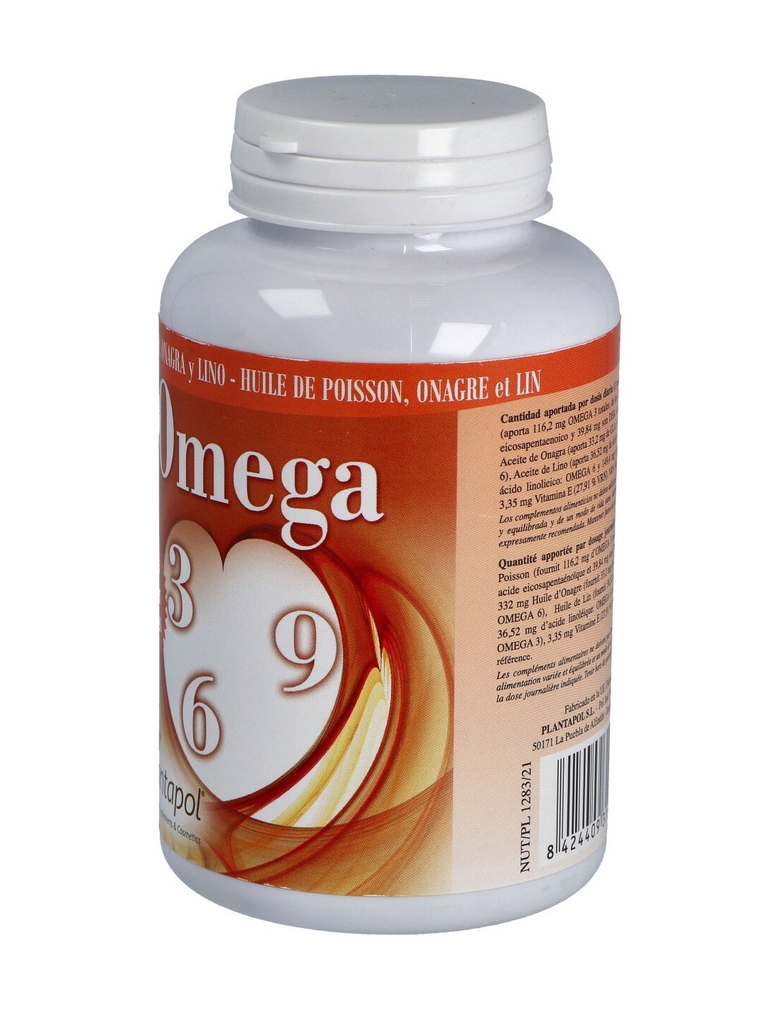 Aceite de Pescado (aporta 116,2 mg omega 3 totales, de los cuales: 59,76 mg son EPA y 39,84 mg son DHA), Aceite de Onagra (aporta 33,2 mg de GLA: ácido gamma linolénico: omega 6), Aceite de Lino (aporta 36,52 mg de ácido oleico: omega 9, 36,52 mg de ácido linolieico: omega 6 y 149,4 mg de ácido linolénico: omega 3), Envoltura (gelatina y glicerol), Vitamina E.