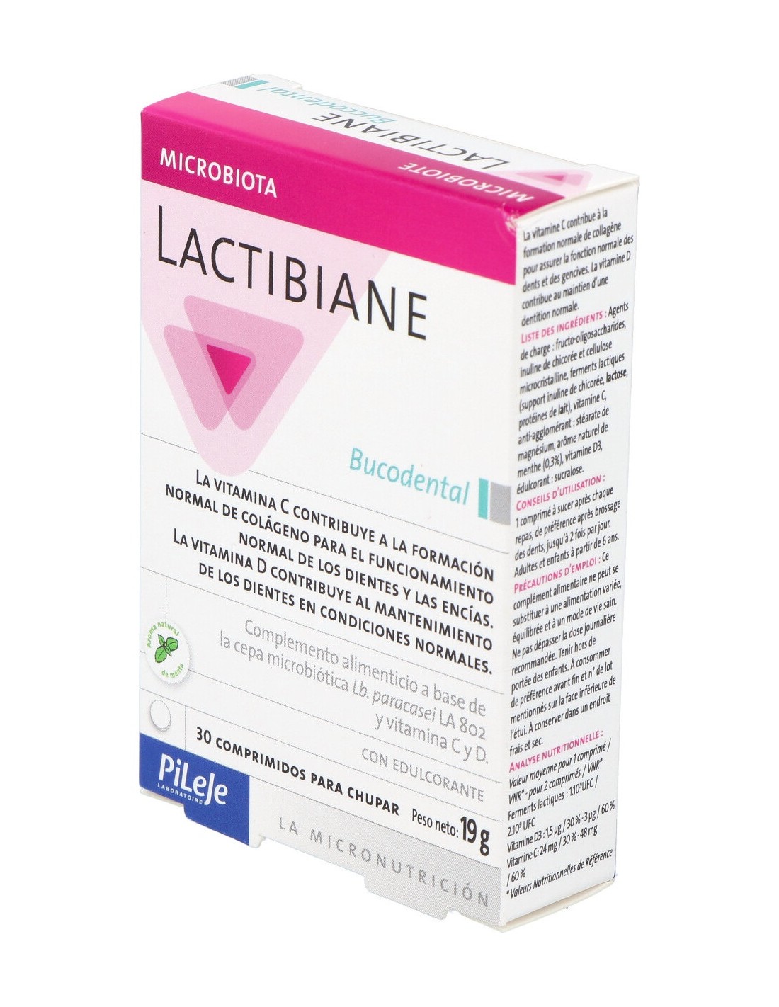 Lactibiane Bucodental 30comp es un tratamiento de infecciones orales utilizado para su prevención gracias a su excelente combinación de activos a base de vitaminas C y D, que asegura una correcta función de los dientes y las encías, así como un buen funcionamiento de los dientes en condiciones normales, y cepa microbiótica Lb. paracasei LA 802, ideal para ayudar a prevenir dolencias periodontales.