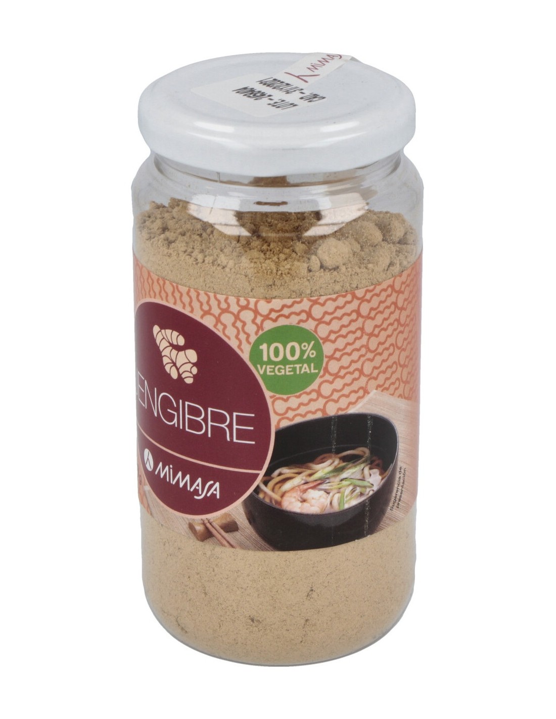 Condimento elaborado a base de polvo de raíz de jengibre natural. Utilizado como condimento en las comidas, el jengibre es beneficioso para las vías respiratorias y favorece una buena digestión. Además de emplearse como condimento culinario, se puede usar en compresas calientes como descongestionante muscular y para ayudar a calmar dolores articulares, lumbagos, reumatismos, etc. También es un remedio natural contra las cefaleas, jaquecas y migrañas.