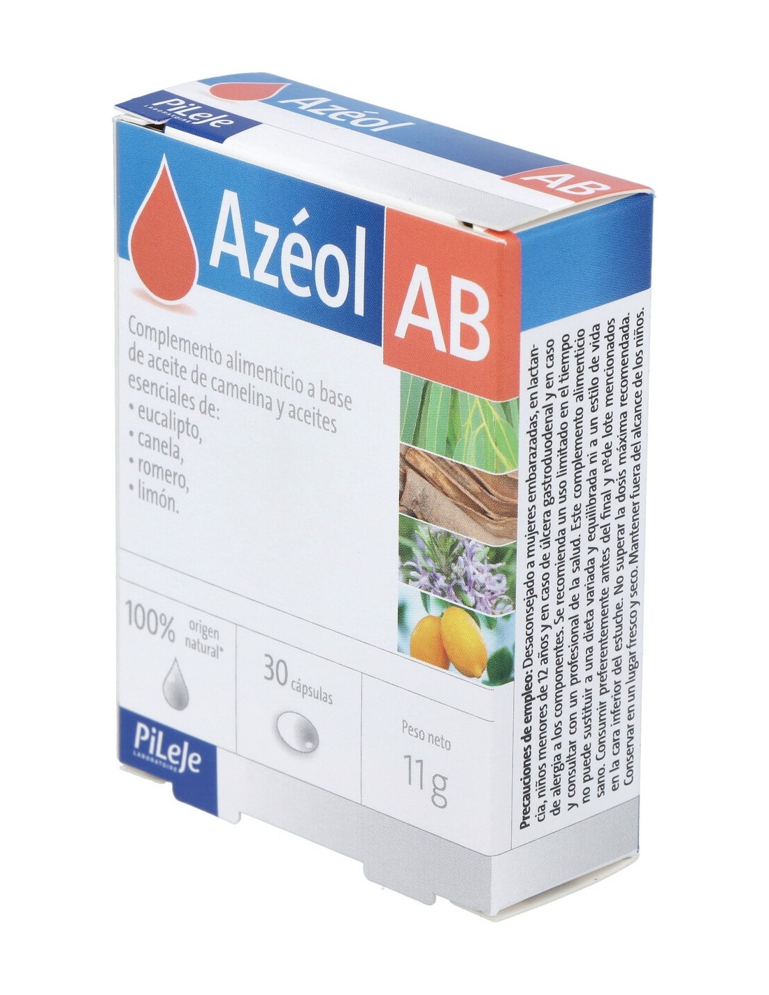 Azeol AB 30 Cáps es un suplemento alimenticio natural a base de eucalipto, canela, romero y zanahoria, especialmente formulado para fortalecer las defensas naturales del cuerpo y protegerlo contra las infecciones. Se recomienda especialmente para ayudar al cuerpo a defenderse durante el período invernal contra las infecciones estacionales (resfriados, gripe).