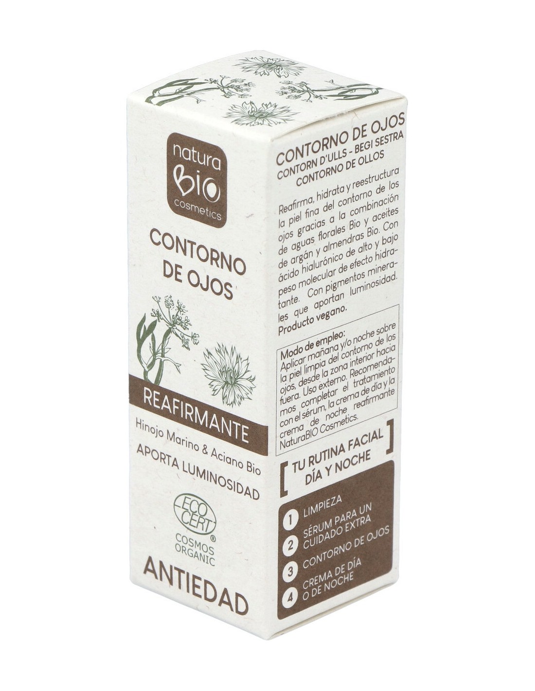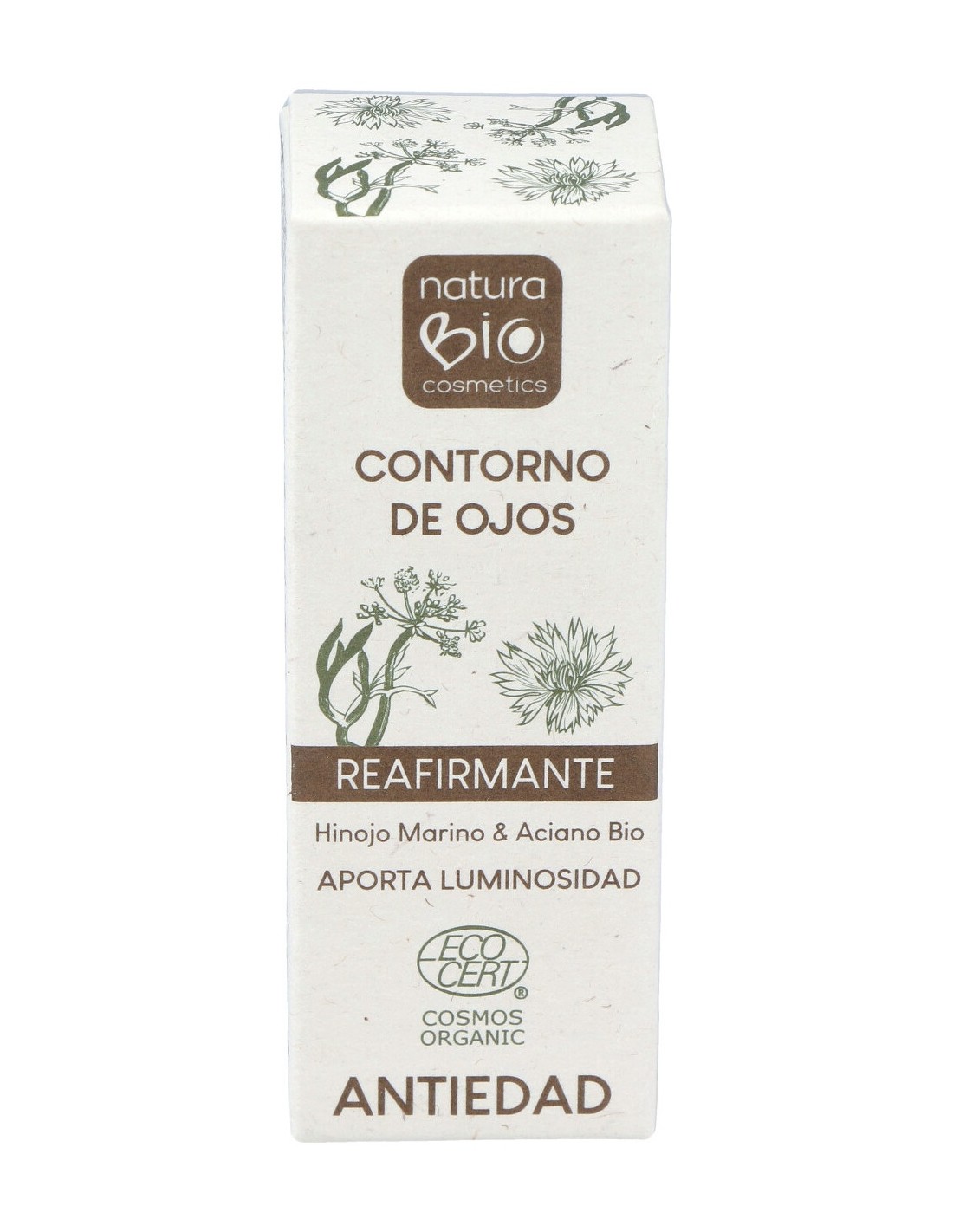 Hidrata y reestructura la piel fina del contorno de los ojos. Rellena las líneas de expresión. Aporta luminosidad a la piel del contorno de los ojos gracias a los pigmentes minerales de la fórmula. Apta para veganos. COSMOS ORGANIC.