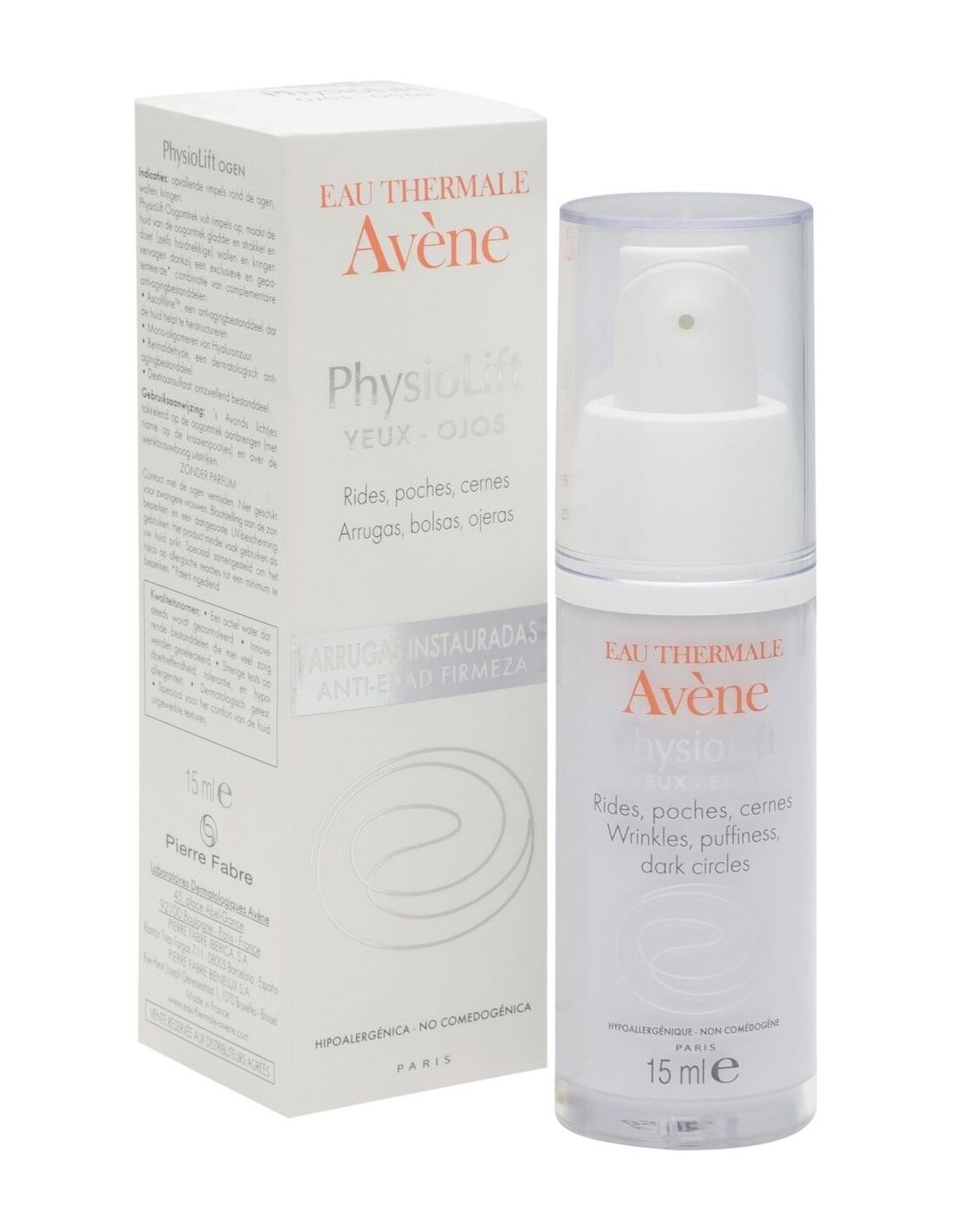 Avène Physiolift contorno ojos 15ml es un contorno de ojos que ayuda a rellenar las arrugas y atenuar las bolsas y ojeras más persistentes que se forman en el contorno de los ojos gracias a los efectos descongestionantes de su composición: ácido hialurónico, retinaldehído y sulfato de dextrano. Además, proporciona una acción calmante y anti-irritante con el Agua termal de Avène.