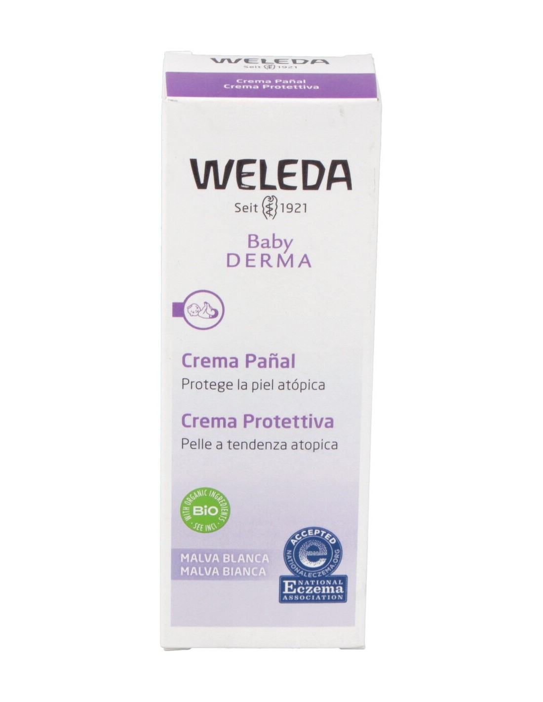 Weleda crema pañal bebé malva blanca es una crema que alivia la piel enrojecida del pañal y protege contra la irritación. Gracias a su formulación cuida la piel hipersensible y atópica del bebé.