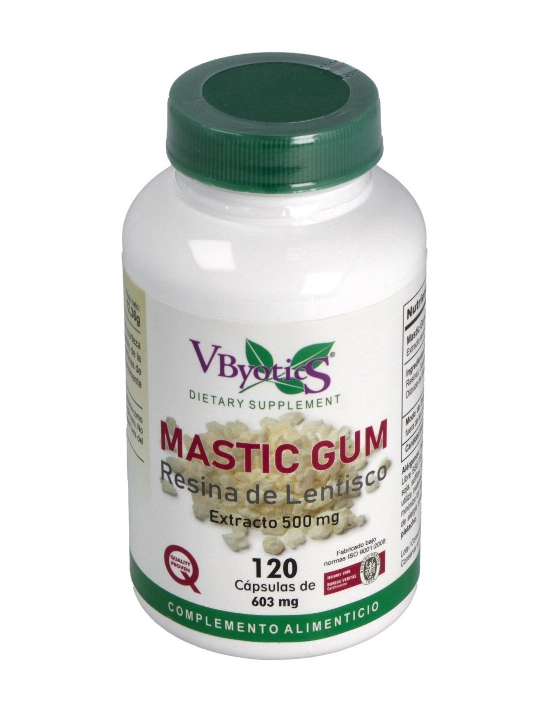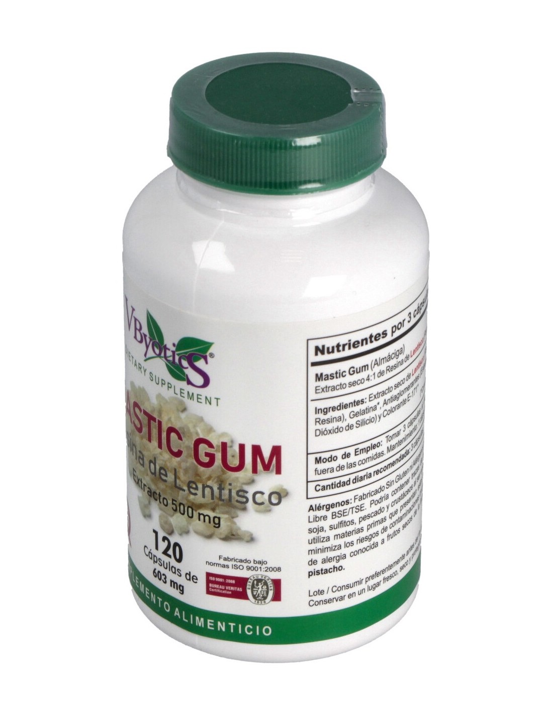 Complemento alimenticio a base resina de lentisco que funciona como protector estomacal, ayudando con la función normal del intestino delgado y el estómago. También tiene propiedades antiinflamatorias, antivirales y antisépticas por lo que es bueno frente a las molestias intestinales y otras bacterias como el Helicobacter pylori.
