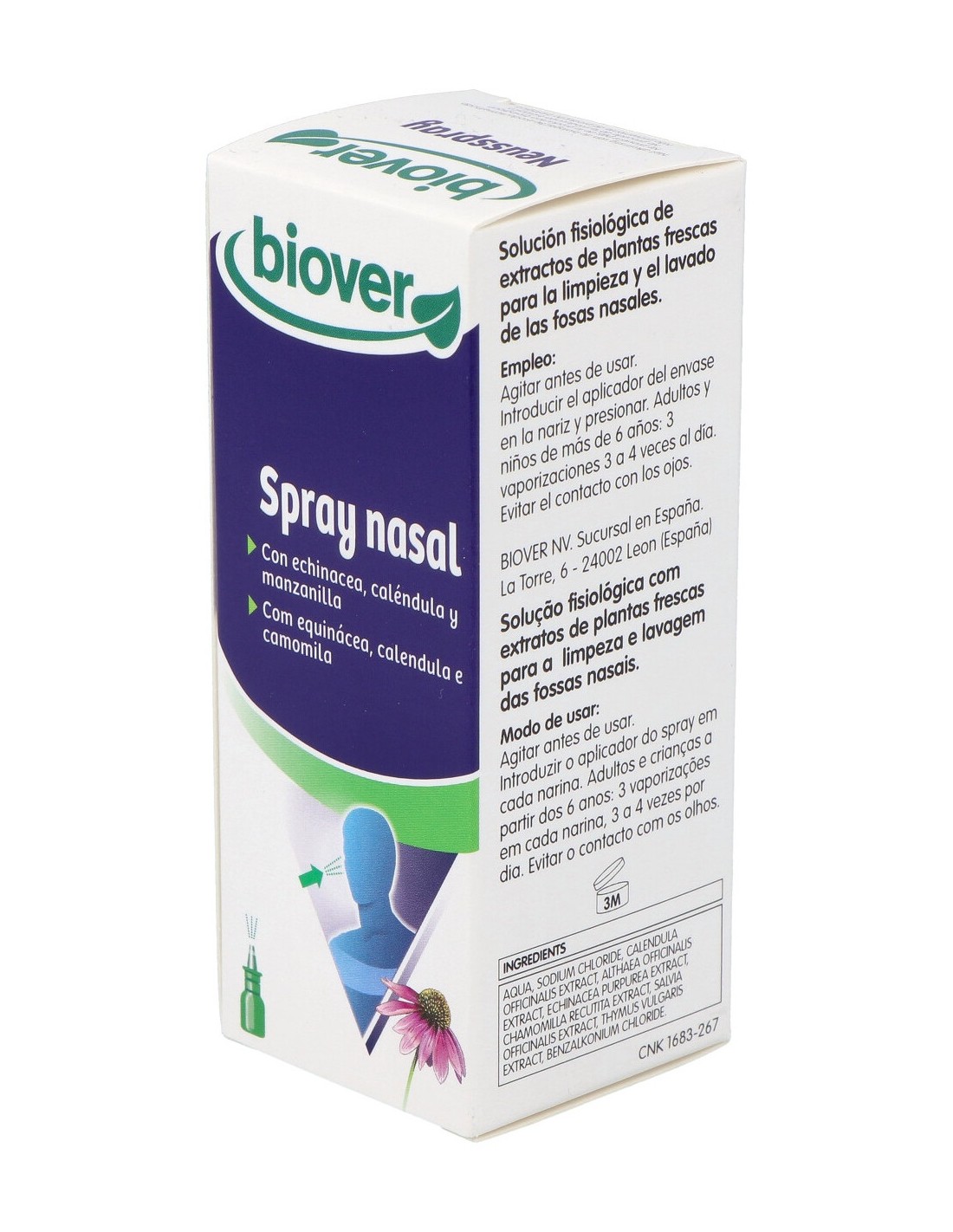 Solución fisiológica de extractos de plantas frescas para la limpieza y el lavado de las fosas nasales. Con echinacea, caléndula y manzanilla.