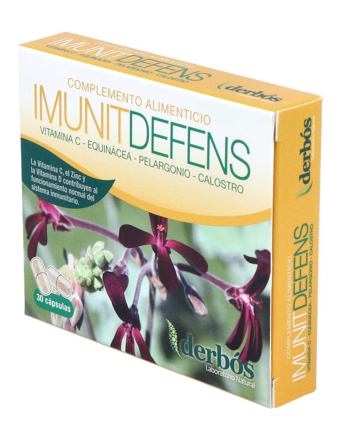 Composición activa por cápsula: 100 mg de extracto seco de equinácea (4 mg polifenoles), 60 mg de extracto seco de pelargonio (20 mg pirogalol), 30 mg de calostro en polvo (9 mg IgG), 100 mg de vitamina C, 10 mg de zinc, 1,25 mcg de vitamina D3.