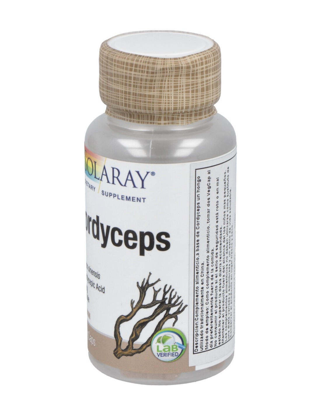 Cordyceps (Cordyceps sinensis)(estandarizado al 10% ácido cordiceptico), Cordyceps (Cordyceps sinensis), cápsula: celulosa vegetal, agente de carga:celulosa, antiaglomerante: estearato de magnesio y sílice.