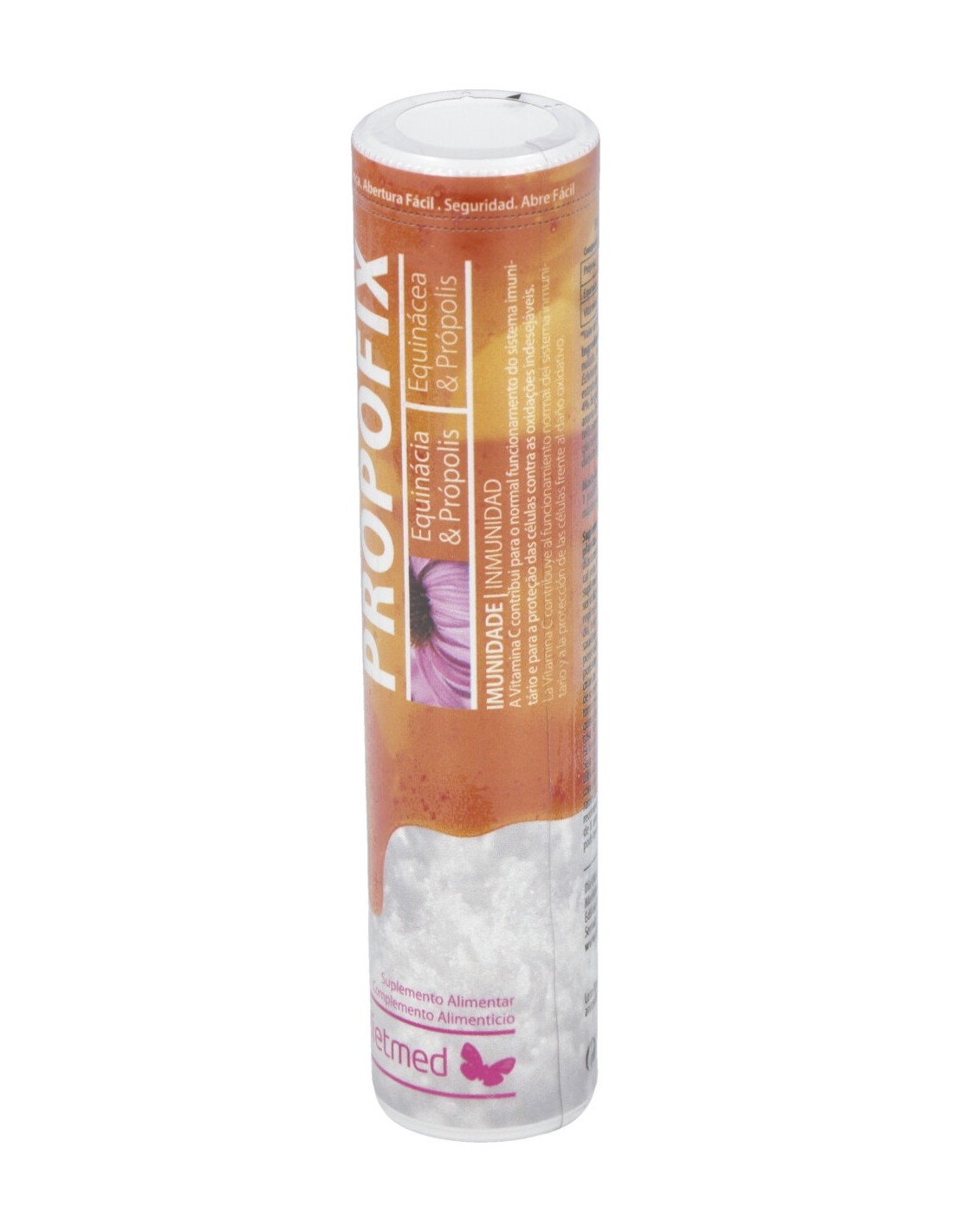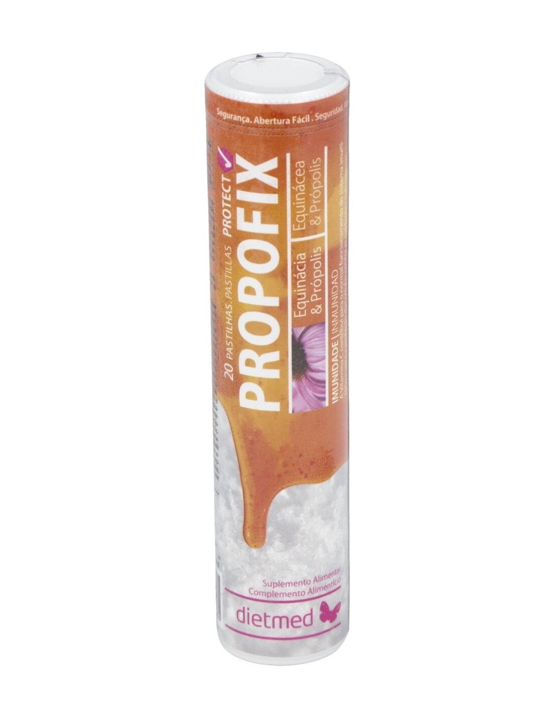 Sorbitol, azúcar granulado, Extracto seco de própolis, Echinacea purpurea L. (Equinácea; Extracto de la raíz conteniendo al menos 4% de polifenoles), ácido L ascórbico, aroma de Mentha x piperita L. (Menta; aceite esencial), antiaglomerantes: estearato de magnesio dióxido de silicio.