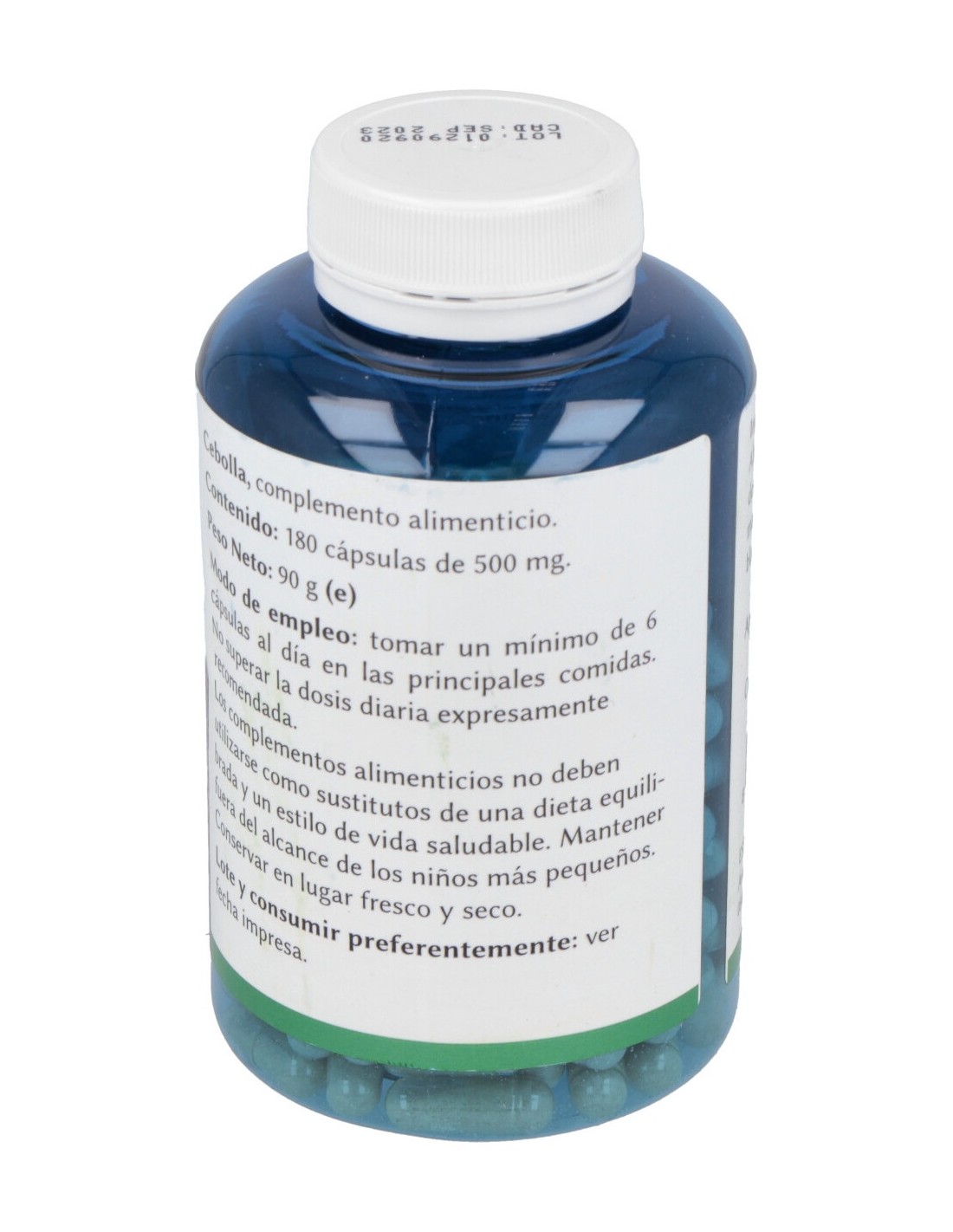 Almidón de maíz, cebolla deshidratada, cebolla extracto seco, fosfato de calcio, estearato de magnesio. Cobertura: cápsula de gelatina blanca (colorante E-171)