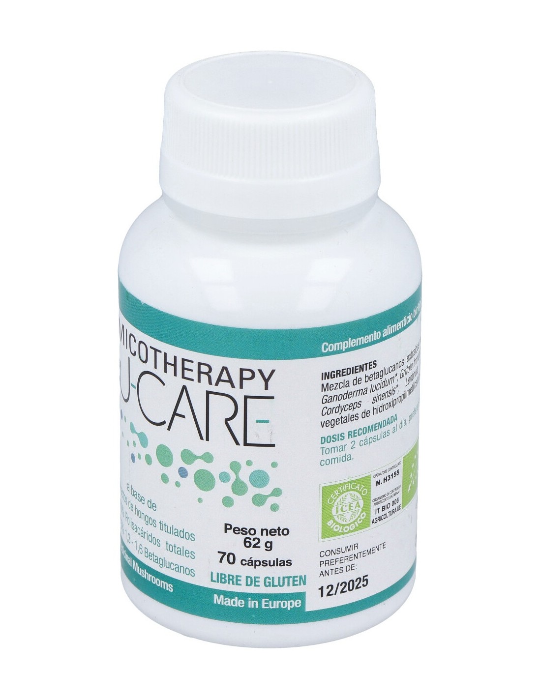 Contiene extractos de reishi, maitake, agaricus blazei, cordyceps sinensis y shiitake, con una alta concentración en polisacáridos, betaglucanos y triterpenos, que favorecen la buena salud del organismo.