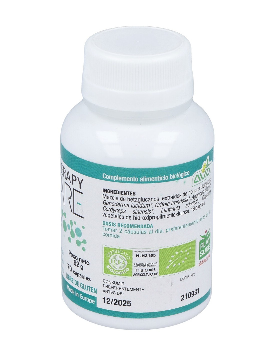 "Complemento alimenticio en forma de cápsulas, elaborado con una mezcla patentada, AVD Reform®, a base de extractos de 5 hongos, que ayudan a promover y reforzar las defensas naturales del sistema inmunitario.