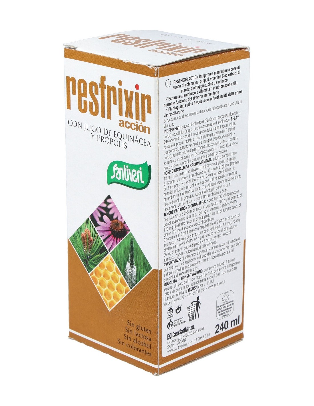 Jarabe a base de jugo de equinácea, própolis y extractos de plantas, indicado para aliviar los síntomas del resfriado y congestión. Contiene vitamina C y extractos de llantén, saúco, pino y eucalipto. Ayuda a prevenir y acortar los síntomas de la gripe. La equinácea es una planta utilizada medicinalmente para reforzar el sistema inmunitario.