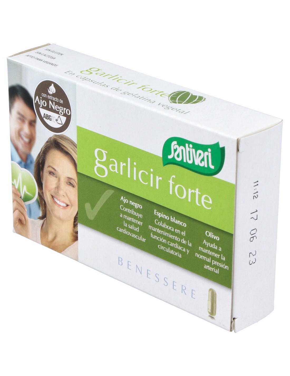 250 mg de extracto ABG10+® extracto seco 10:1 de ajo negro (250 µg de S-allil cisteína (SAC), 200 mg de extracto seco de olivo (12 mg oleuropeína) y 200 mg de extracto seco de espino blanco (5 mg hiperósido).