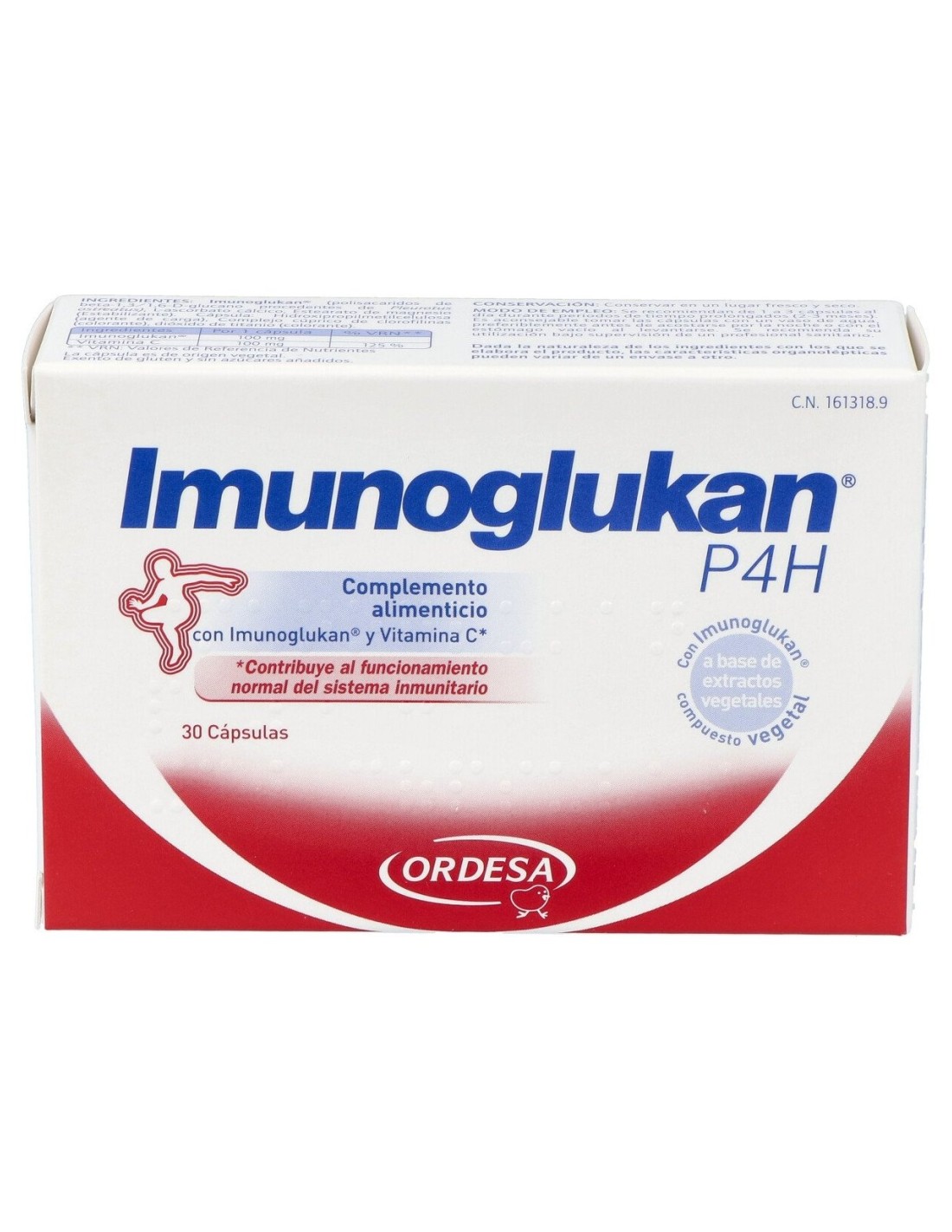 Imunoglukan, vitamina C (ascorbato de calcio). Otros ingredientes: Estearato de magnesio.