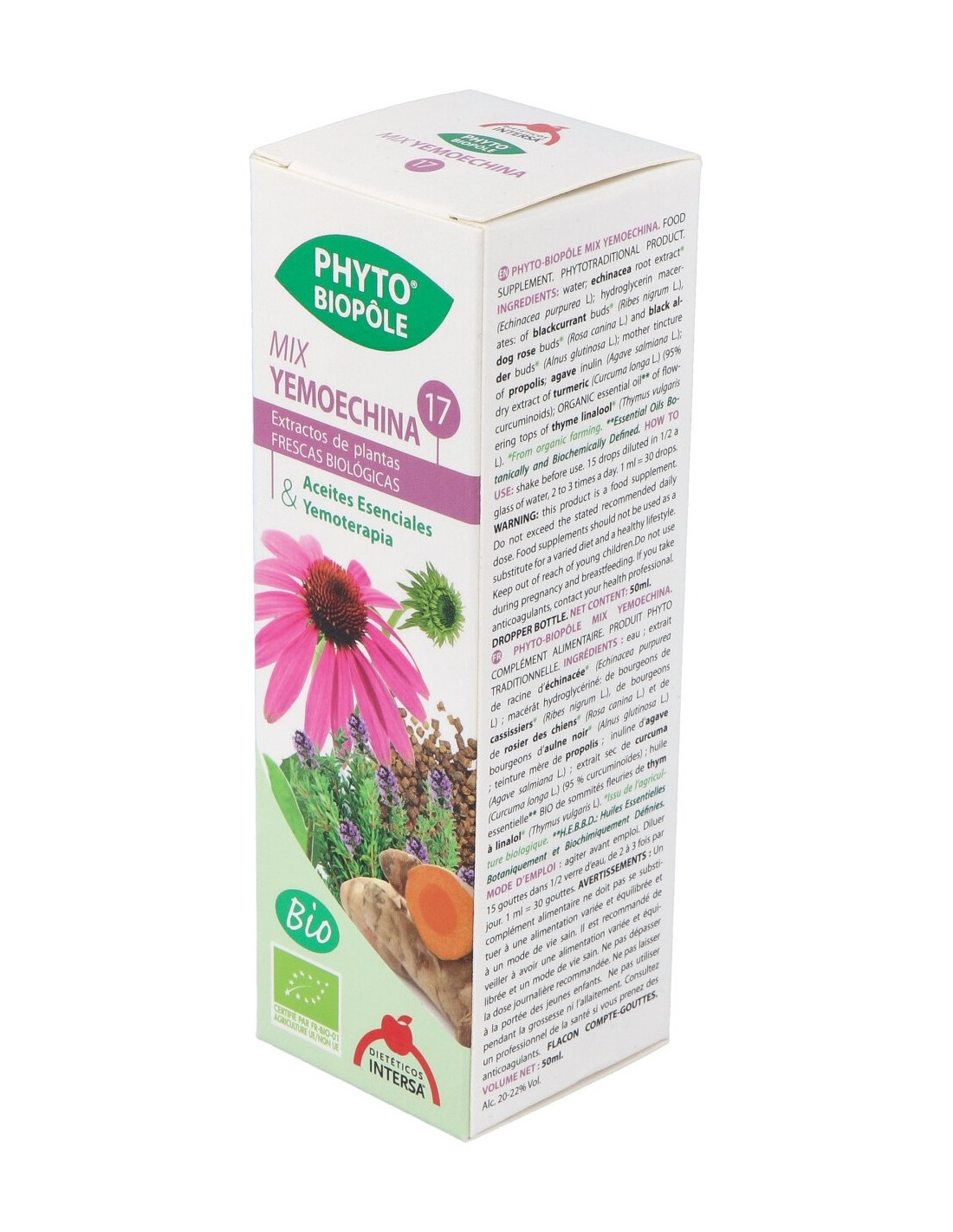 Con propiedades antisépticas, antiinflamatorias y antimicrobianas. Favorece el aumento de las defensas del cuerpo frente a virus, bacterias, parásitos y microbios. Elaborado con plantas medicinales como cúrcuma, rosa canina, grosello negro y aceite esencial de tomillo.