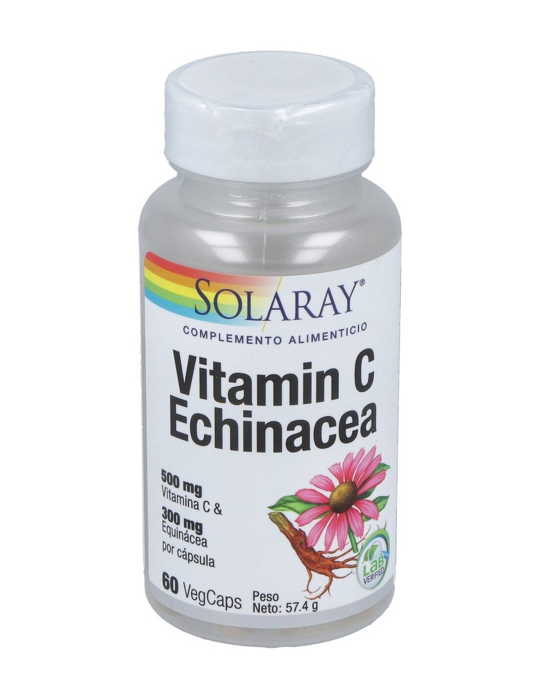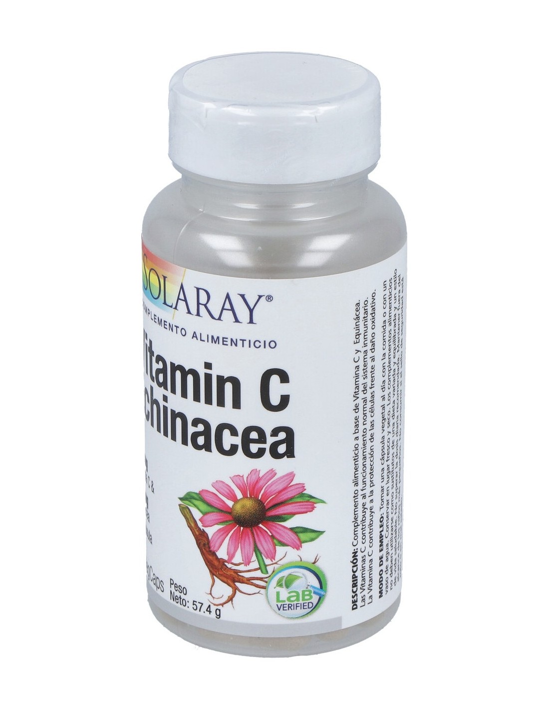 Vitamina C (ac. ascórbico): Equinácea (Echinacea purpurea y Echinacea angustifolia) (raíz): cápsula de celulosa vegetal: Base de apoyo de Vitamina C (escaramujo, concentrado de bioflavonoides, concentrado de rutina, bayas acerola): antiaglomerante: estearato de magnesio.