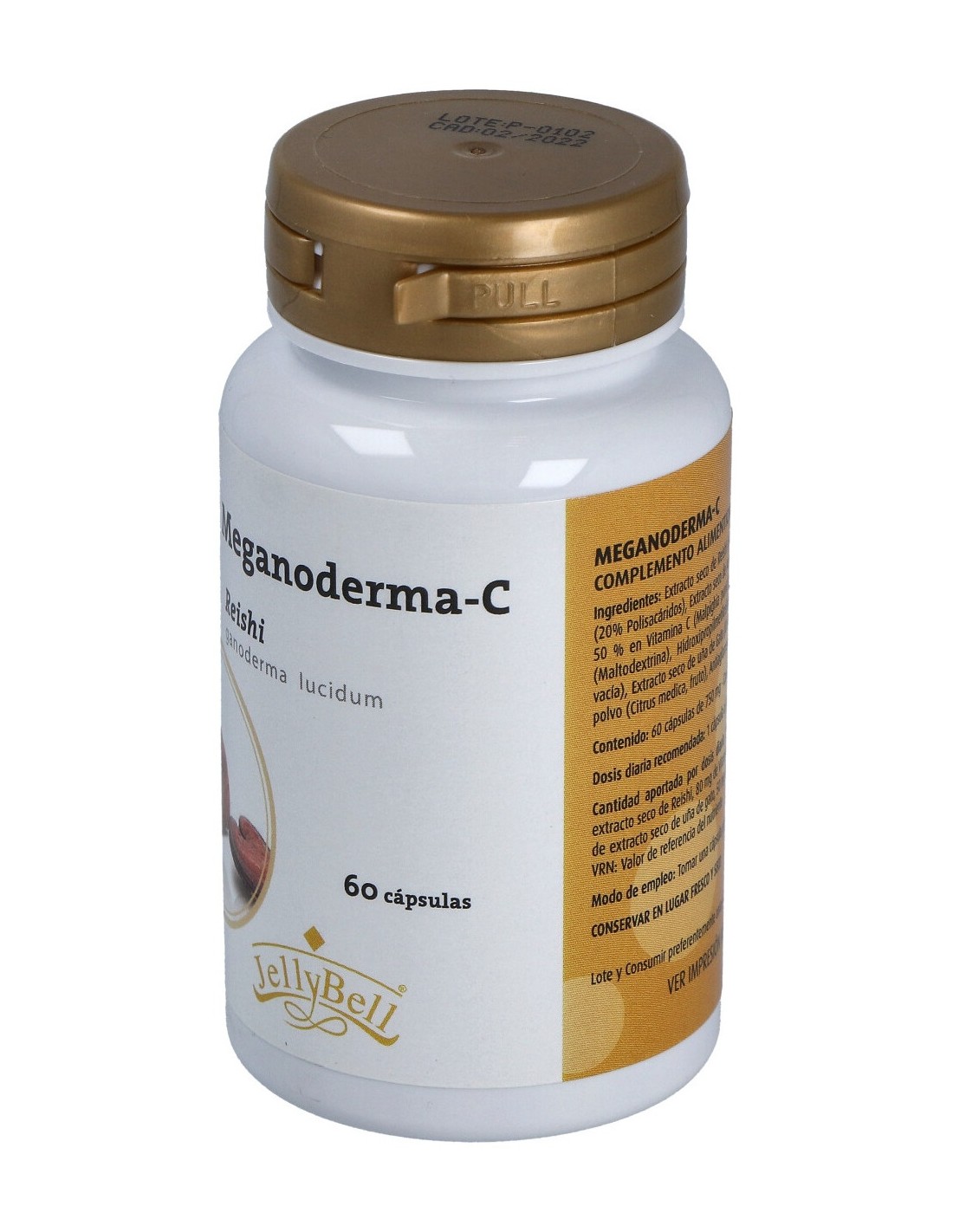 "Cápsulas de complemento alimenticio de Meganoderma-C de la marca Jellybell que está elaborado a base de Reishi, que ayuda a tener una buena acción inmunomoduladora y antioxidante, sobre todo en casos de fatiga crónica, ayudando a mejorar el funcionamiento del sistema inmunológico
