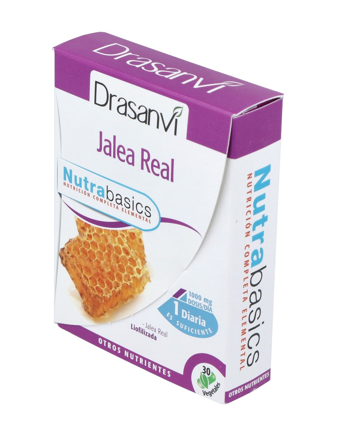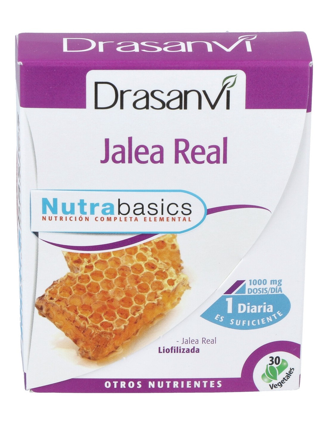 Drasanvi Jalea Real es un complemento alimenticio de jalea real liofilizada, es decir, 3 veces más concentrada que la jalea real fresca. Es rica en vitaminas (principalmente del complejo B), minerales (potasio, sodio, calcio, hierro, zinc...) y aminoácidos esenciales.